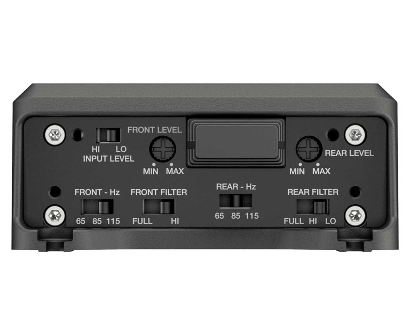 Dank des äußerst kompakten Gehäuses aus Aluminiumguss (IPX64-Einstufung) sind die HMP 4D Verstärker unempfindlich gegenüber natürlichen Einflüssen und somit die ideale Wahl für UTV-/ATV-/Motorrad-Installationen. Er verfügt über ein unglaubliches Verhältnis von Leistung zu Größe und erlaubt dank der integrierten Frequenzweiche eine einfache Konfiguration. Der Front-End-Bereich verfügt über ein komplettes und überbrückbares Crossover-System, das für eine vollständige Flexibilität beim Systemdesign mit oder ohne externe Prozessoren sorgt und dem Anwender unendlich viele Anschlussmöglichkeiten mit jeder beliebigen Quelle bietet. Die Eingänge verfügen über eine speziell ausbalancierte Schaltung, die eine hohe Unterdrückung von elektromagnetischen Störungen zur Erzielung rauscharmer Ergebnisse sicherstellt.