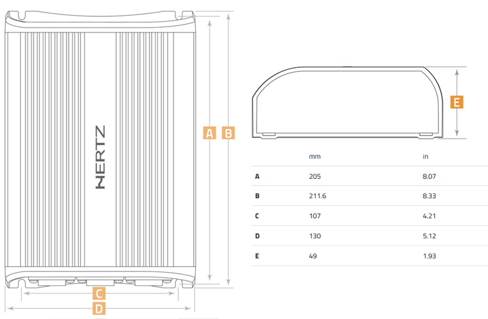 Der Mono-Verstärker SP 1.900 verfügt über eine Hertz ADC (Advanced D-Class) Ausgangsstufe, die einen Wirkungsgrad von bis zu 87 % erreicht und eine beeindruckende Nennleistung von 1000 W RMS (1 Ohm) bei einer ultrakompakten Größe von 211,6 x 130 x 49 / 8,3 x 5,1 x 1,9 (mm/Zoll) liefert. Der SP 1.900 ist ultrakompakt und mit beeindruckender Leistung die ideale Wahl für Motorradanwendungen unter dem Sitz von Sportwagen und hinter dem Sitz im Lkw.