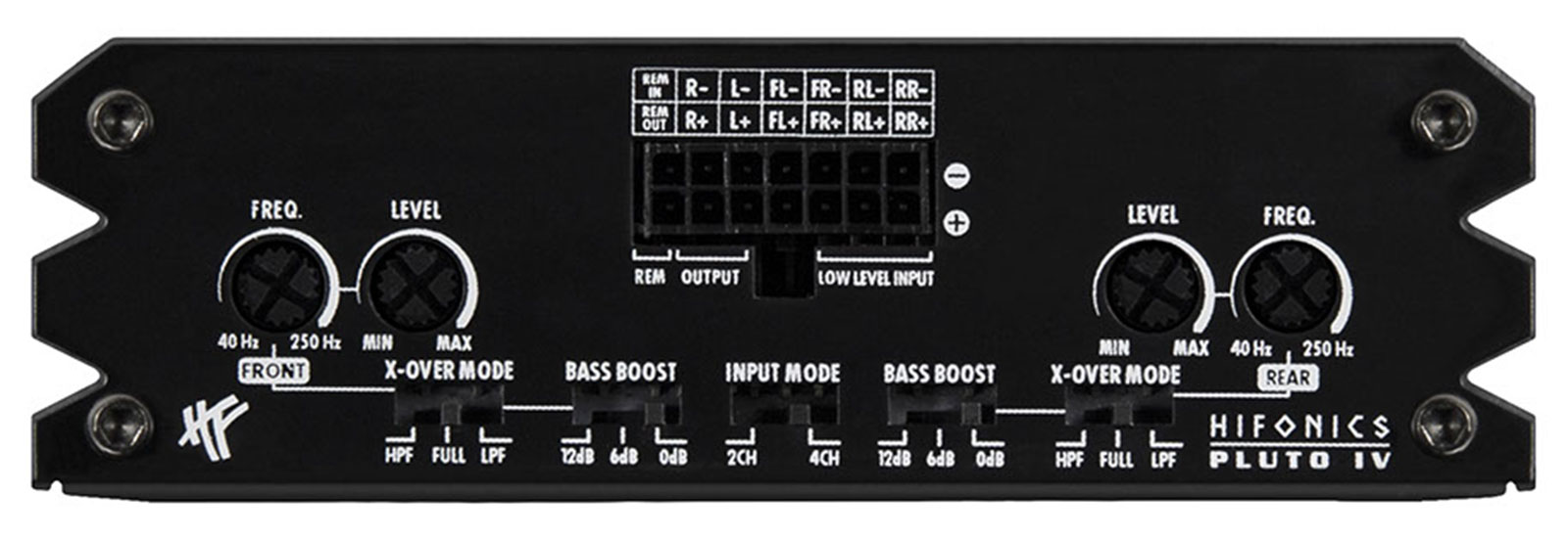 Dass HiFonics nicht nur große Verstärkerboliden, sondern auch kleine Mini-Kraftwerke bauen kann, ist nicht erst seit den Triton oder Mercury Modellen bekannt. Hifonics führt die bewährte Tradition nun mit der brandneuen PLUTO Serie fort. Erfreulicherweise sind die Verstärker nochmals eine ganze Ecke kleiner ausgefallen. Obendrein sind sie blitzsauber aufgebaut und sind vollgepackt mit modernen Features. Ermöglicht wurde die Schrumpfkur dank moderner Class D Technik, die sich insbesondere durch den außergewöhnlich hohen Wirkungsgrad von bis zu 90% gut zeigt. Durch die Verbesserung der Leistungsdichte infolge der Fortschritte bei Halbleitern nimmt interessanterweise auch die Audio- Performance zu. So sind die neuen PLUTO Verstärker nicht nur besonders klein, sie klingen auch noch überragend. Ebenso wichtig wie Leistung oder kompakte Einbaugröße ist immer mehr auch die Frage, ob sich die neuen Verstärker in moderne Fahrzeuge integrieren lassen, speziell wenn "Fehler-Diagnosesysteme" an Bord sind. Solche Systeme diagnostizieren, wenn sich etwas an der ursprünglichen Werkskonfiguration ändert. Aus diesem Grund wurde in die Hochpegeleingänge der PLUTO Serie das fortschrittliche EPS und die automatische Einschaltfunktion integriert, um die Funktion gerade in modernen Fahrzeugen sicherzustellen. Zusätzliche Adapter können somit entfallen. Hifonics legt traditionell nicht nur großen Wert auf innere Werte, auch die Verarbeitung muss stimmen. So präsentiert sich auch die PLUTO Serie sehr hochwertig. Mit den aufwendig gefrästen Modellbezeichnungen und den bündig eingelassenen Logos in Diamantschliff geben sich die kleinen Plutos als waschechte HiFonics Verstärker zu erkennen.