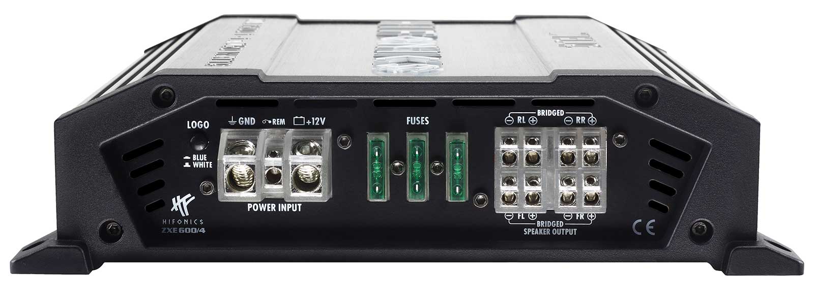 Der gebürstete Alu-Kühlkörper alleine ist schon ein echter Blickfang. Schwarze Aluguss-Endkappen unterstreichen zusätzlich den hochwertigen Eindruck. Ein besonderes Highlight ist nicht nur das blau beleuchtete HiFonics-Logo, auch die Strom- und Lautsprecheranschlüsse sind dezent beleuchtet. So wird auch im Dunkeln deutlich, dass es sich hier um eine HiFonics-Endstufe der EVO-Serie handelt.