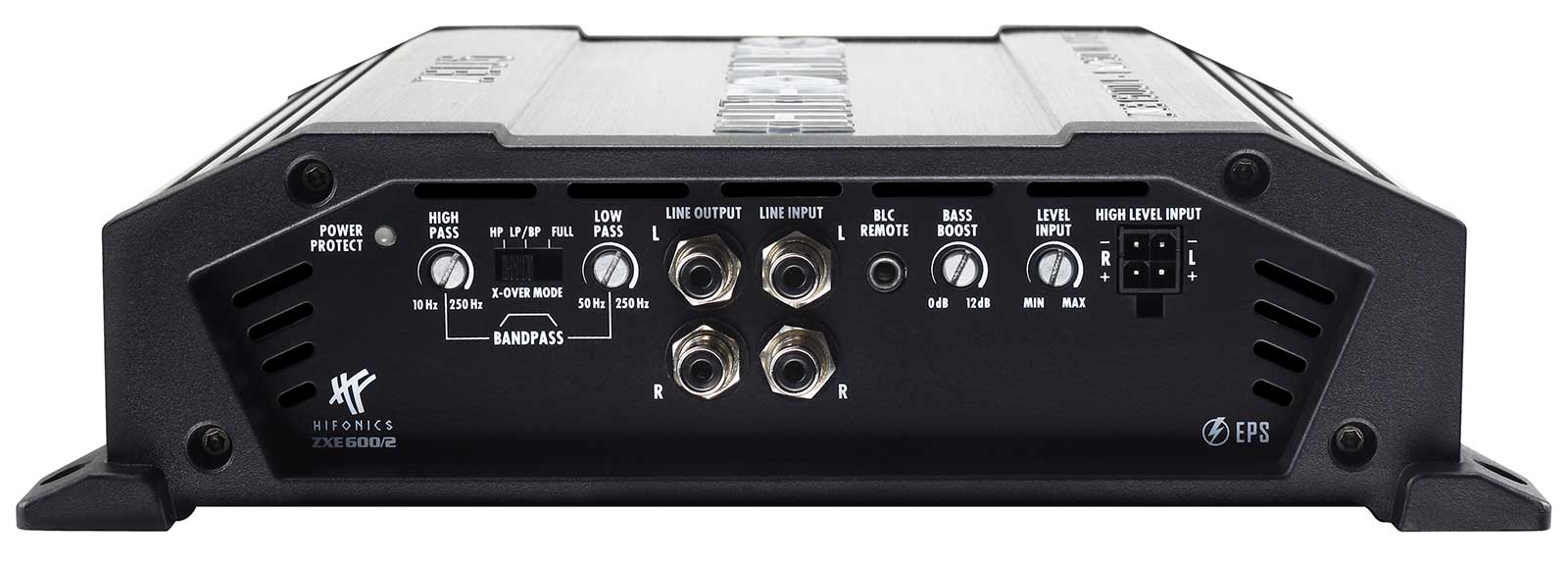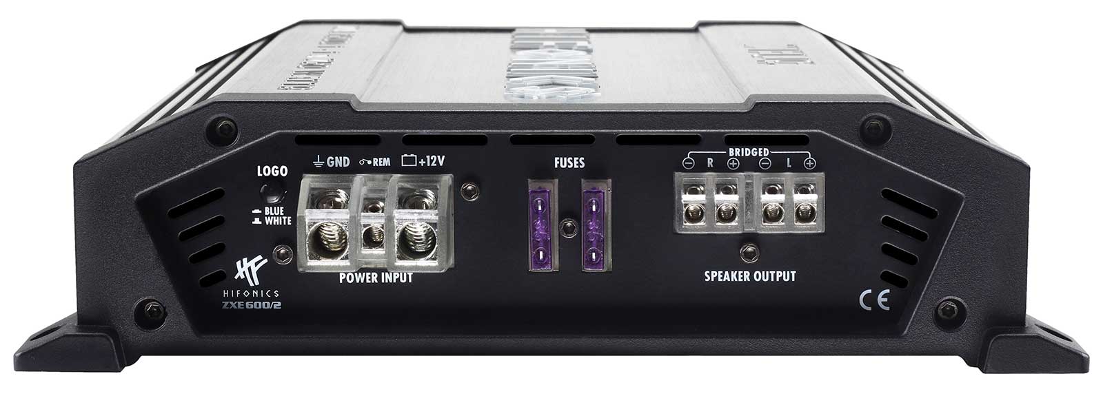 Die neuen HiFonics ZEUS EVOLUTION ZXE Verstärker besitzen schon ab Werk hochfunktionale Features wie Hochpegel-Eingänge mit EPS, Einschaltautomatik, Start-Stopp-Fähigkeit, voll regelbare Weichen, Bandpass-Funktion, Bass-Pegelfernbedienung und sind damit perfekt für den multiplen Einsatz in modernen Car Hifi Systemen gewappnet. Bei der Auswahl der Komponenten im Innern wurde ebenfalls nicht gespart: So kommen aufwendige und teure NE5532 Operationsverstärker zum Einsatz, die normalerweise nur in viel teureren Modellen zu finden sind. Das Resultat verblüfft nicht nur durch hohe Leistung, sondern auch durch unglaublich feinen Klang. Der gebürstete, in grau gehaltene Alu-Kühlkörper ist schon eine Augenweide an sich. Die schwarzen Endcaps aus Aluminium-Guss unterstreichen zusätzlich die Wertigkeit der ZEUS EVOLUTION ZXE Serie. Optisches Highlight ist das beleuchtete HiFonics-Logo, das sich von blau auf weiß umschalten lässt. Aber nicht nur das Logo ist beleuchtet, auch die Strom- und Lautsprecheranschlüsse strahlen in HiFonics blau und sorgen für ein weiteres optisches Highlight.