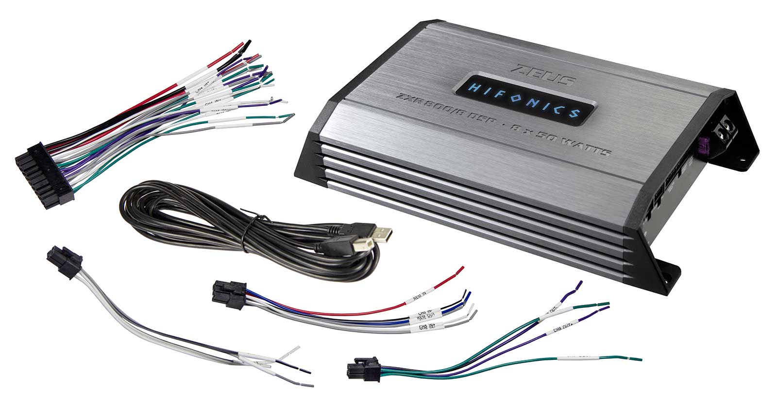 Falls zunächst nur die internen Verstärkerkanäle komplett benutzt werden, bieten 8 x 50 Watt RMS bereits eine Vielzahl an Einsatzmöglichkeiten, selbst um 2-Wege Front- und Hecksysteme vollaktiv anzusteuern. Sollte irgendwann ein leistungsstarker Subwoofer mit externem Verstärker ergänzt werden - kein Problem: Dank des 10-Kanal DSPs stehen selbst bei Nutzung aller 8 interner Kanäle noch 2 Ausgänge am DSP zur Verfügung, die für die Ansteuerung eines Monoblocks ideal geeignet sind. Dank des MX-Connect Anschlusses lässt sich die ZXR800/8DSP auch mühelos über fahrzeugspezifische Adapterkabel via Plug+Play direkt mit dem Autoradio verbinden.