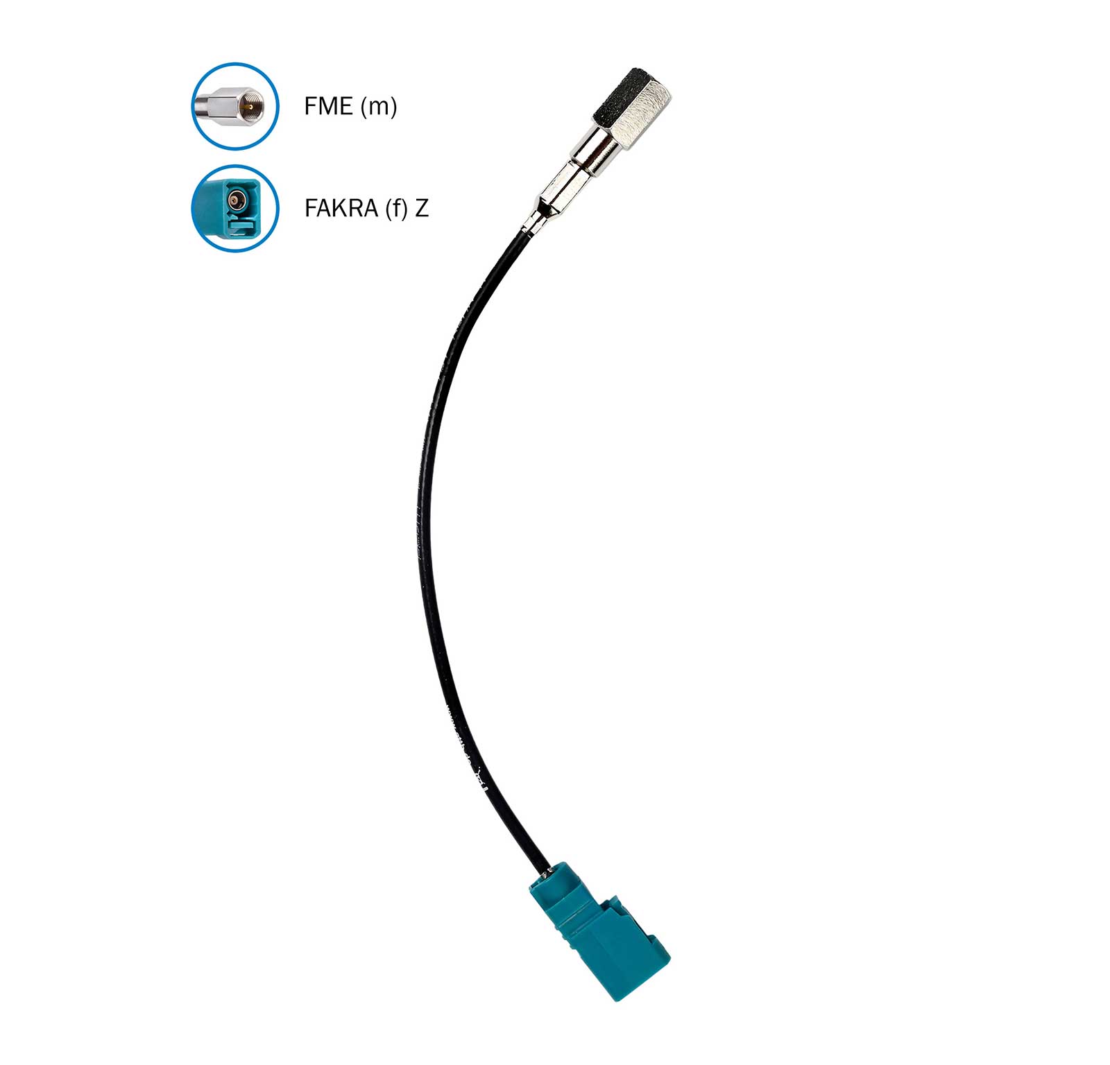 Stecker an Autoradios mit Fakra Antennenanschluss oder einer Antenne mit Fakra Antennenanschluss an Autoradios mit FME Antennenanschluss
