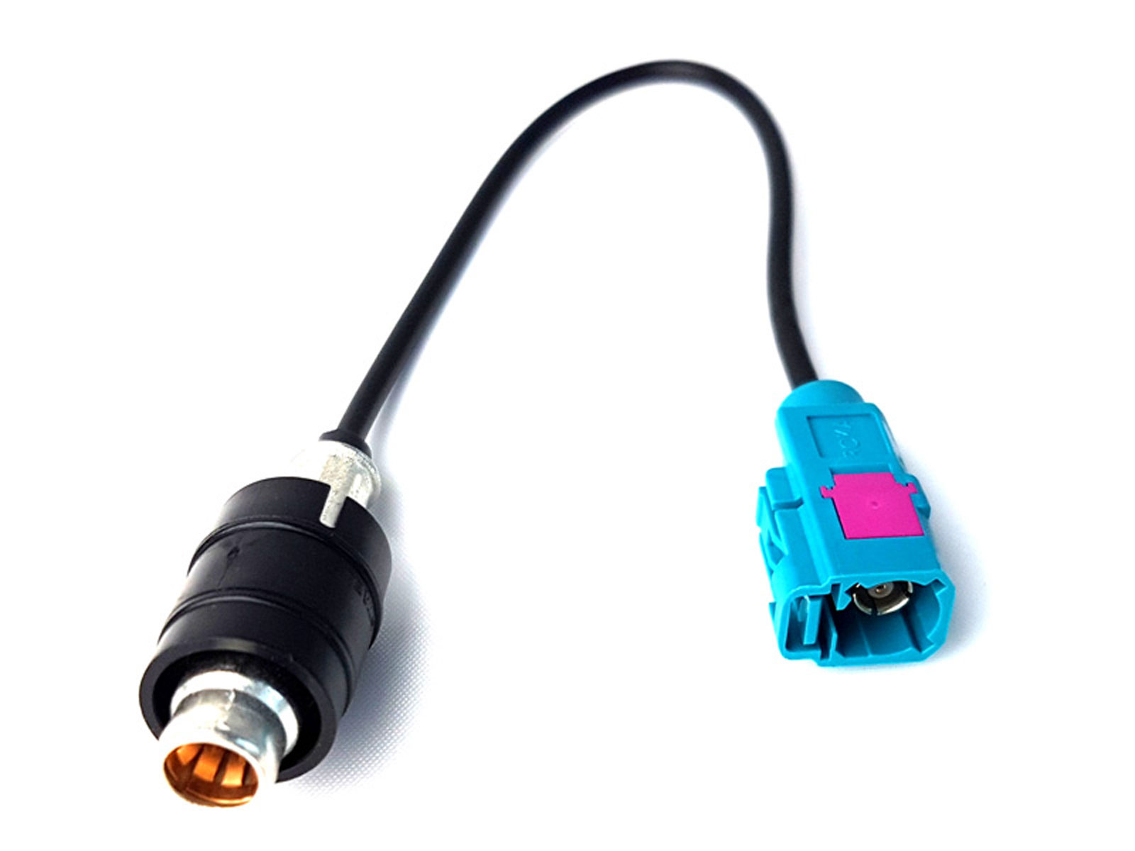 Anschlüsse am Adapter: Eingang: Fakra Buchse, Ausgang: Koax Stecker