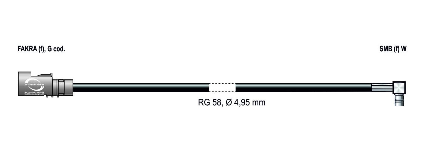 Verlängerungskabel (FM, 9,5m, RG 58, FAKRA (f) G auf SMB (f) Winkel)