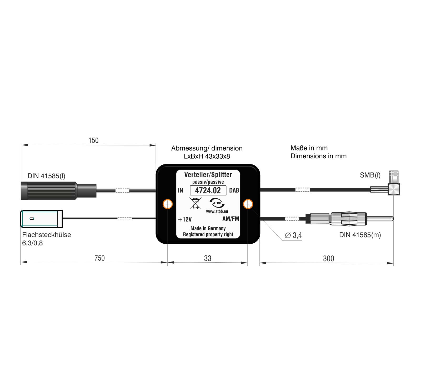 Die besten Ergebnisse werden erzielt, wenn der Splitter mit einer aktiven ungefilterten Antenne FM/UKW/DAB+ kombiniert wird.