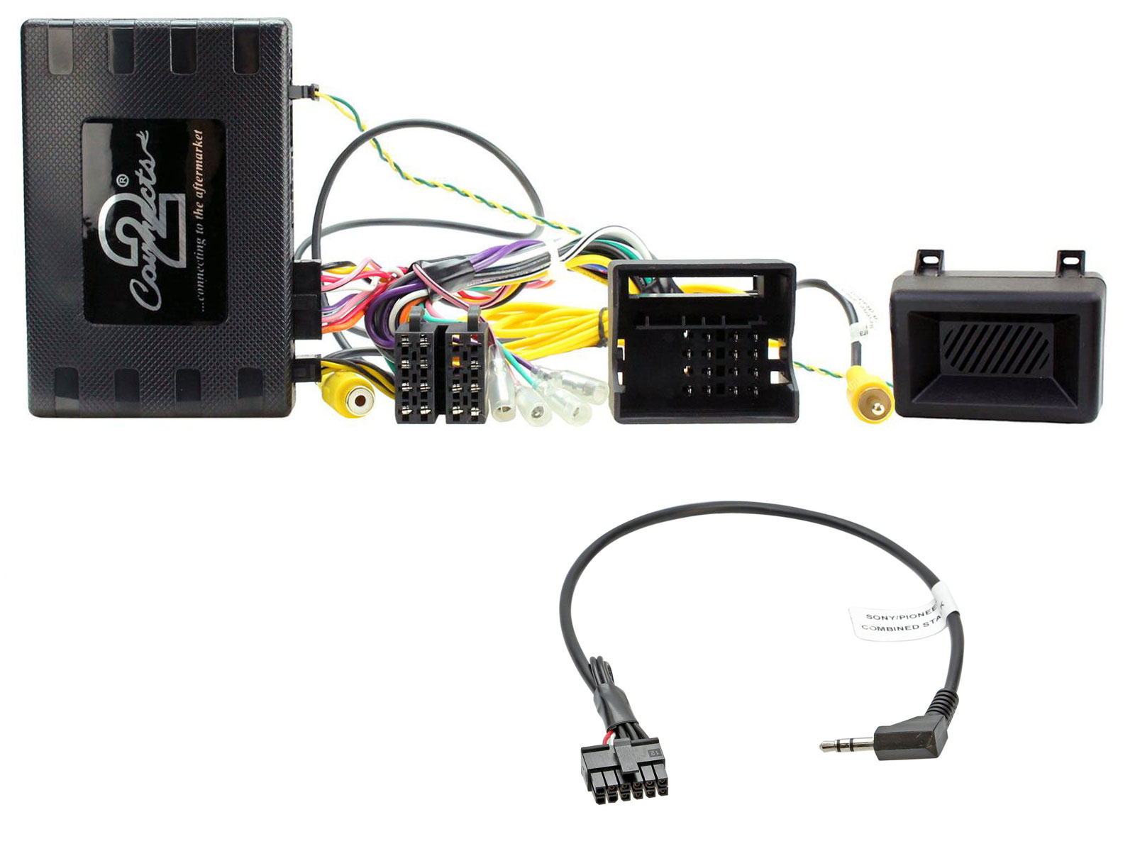Lieferumfang: Lenkradfernbedienungsinterface, Anschlußkabel (KFZ auf ISO), Kabel zum Anschluß ans Nachrüst-Radio (Remote in), Einbauanleitung