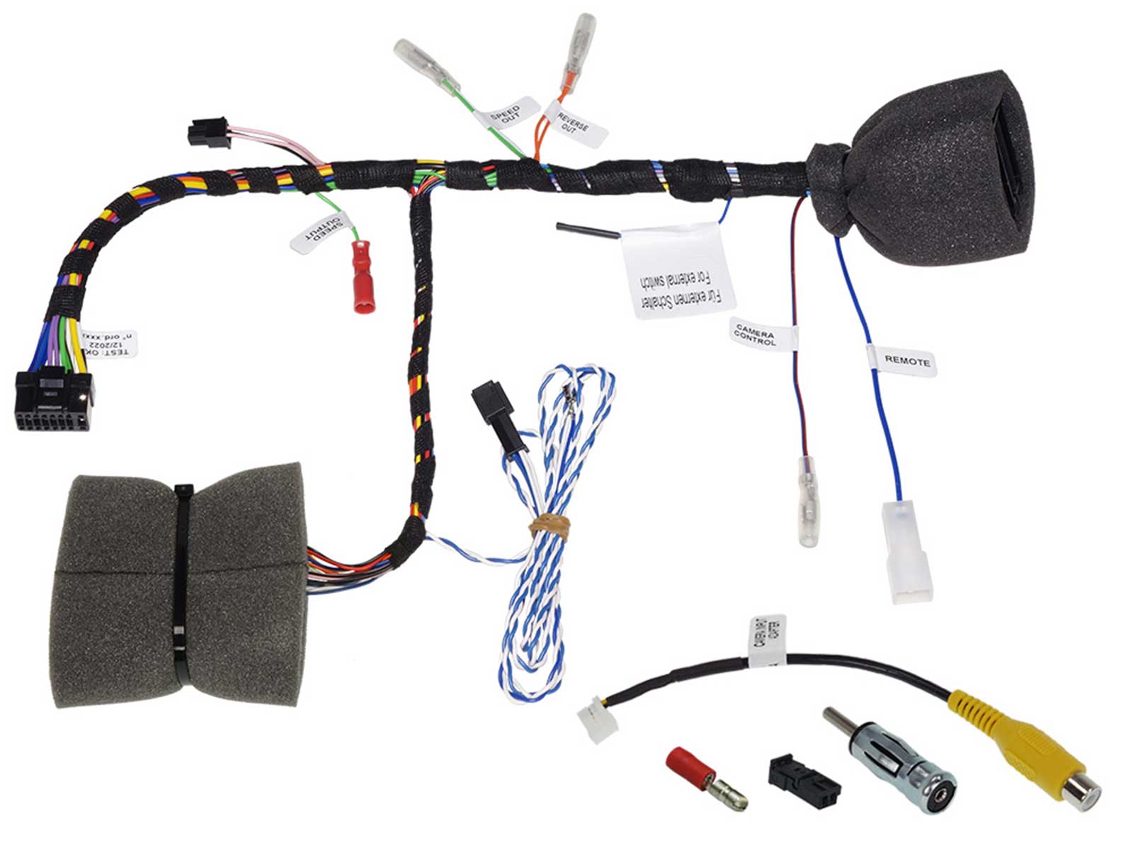 Im Lieferumfang enthalten: Lenkradfernbedienungsinterface (liefert CAN zu Analogumwandlung für Zündung, Parkbremse, Geschwindigkeitssignal, SIRI und OK Google-Unterstützung), ISO-DIN Antennenadapter, Alpine Direkt Kamera - Cinchadapter und ISO-Anschluss.