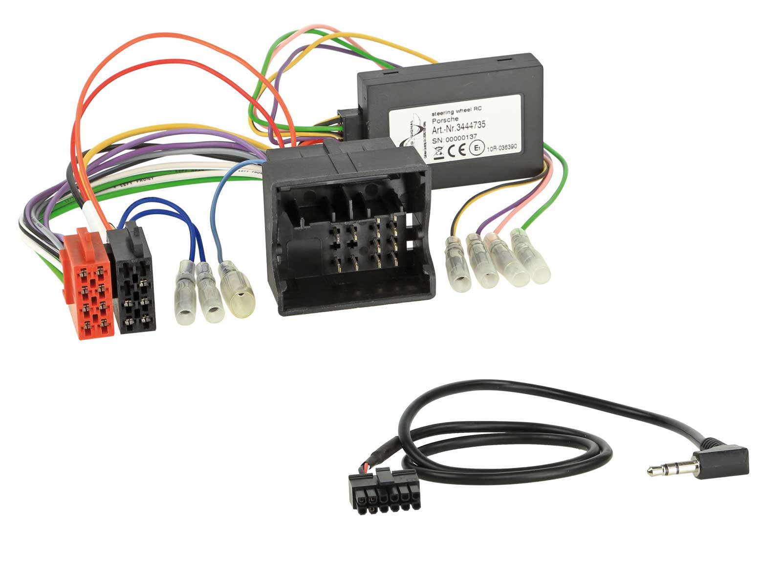 Lieferumfang: Lenkradfernbedienungsinterface, Anschlußkabel (KFZ auf ISO), Kabel zum Anschluß ans Nachrüst-Radio (Remote in), Einbauanleitung