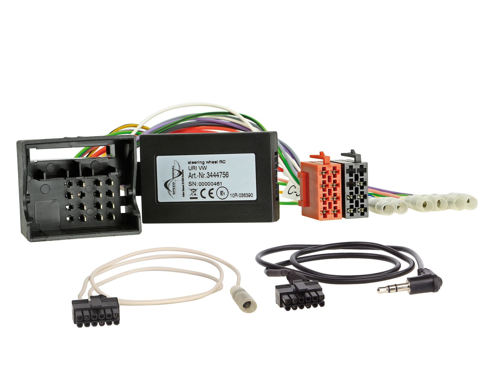 Lieferumfang: Lenkradfernbedienungsinterface, Anschlußkabel (KFZ auf ISO), Kabel zum Anschluß ans Nachrüst-Radio (Remote in), Einbauanleitung