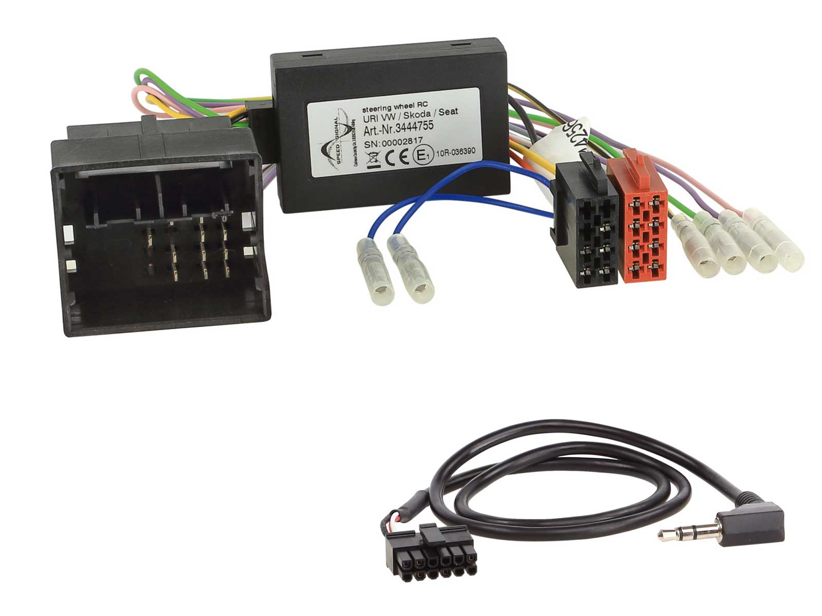 Lieferumfang: Lenkradfernbedienungsinterface, Anschlußkabel (KFZ auf ISO), Kabel zum Anschluß ans Nachrüst-Radio (Remote in), Einbauanleitung