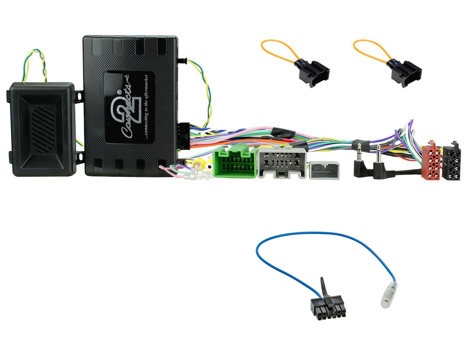 Lieferumfang: Lenkradfernbedienungsinterface, Anschlußkabel (KFZ auf ISO), Kabel zum Anschluß ans Nachrüst-Radio (Remote in), Einbauanleitung