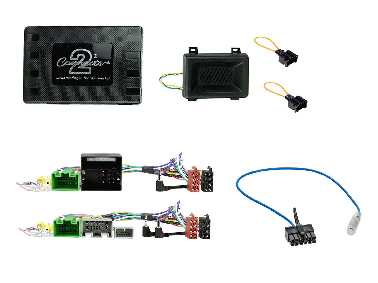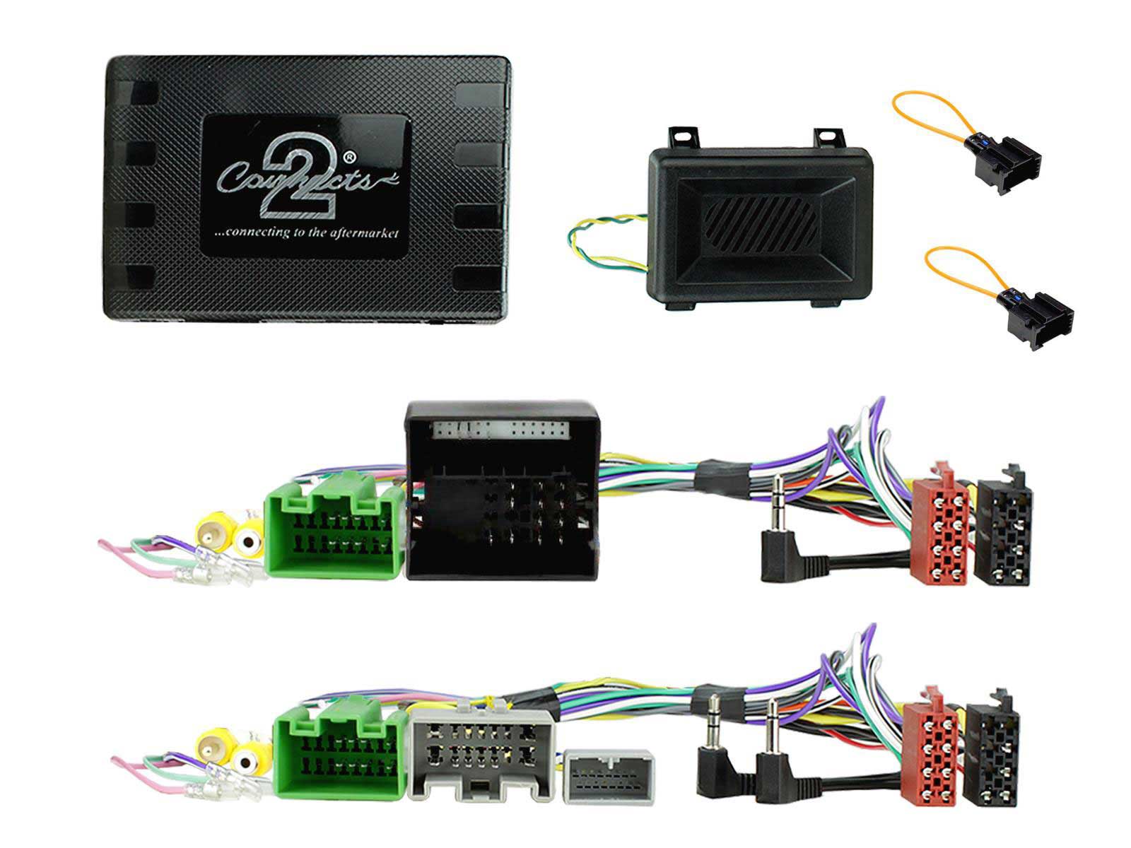 Lieferumfang: Lenkradfernbedienungsinterface, Anschlußkabel (KFZ auf ISO), Kabel zum Anschluß ans Nachrüst-Radio (Remote in), Einbauanleitung