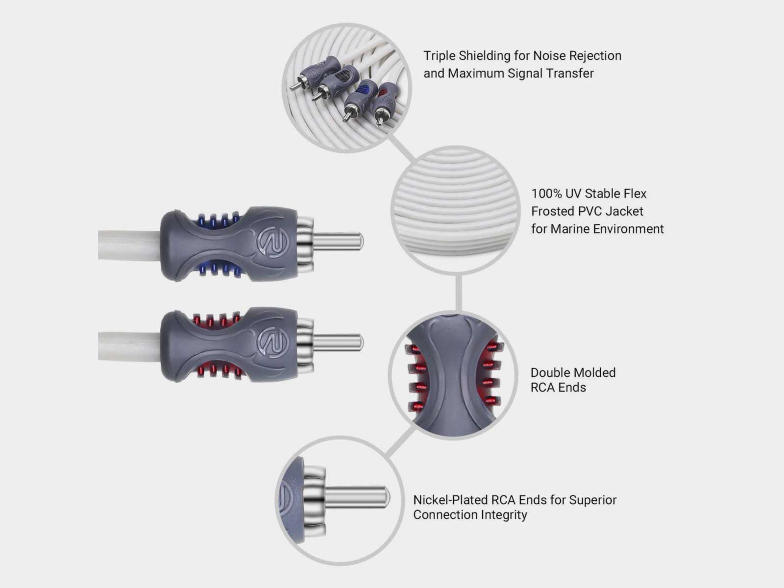 4-Kanal Cinch-Interconnect-Kabel, 700 cm Länge, liefert kristallklaren Stereosound für High-End-Auto-Audio, Marine-, Motorrad- und Powersports-Audio.