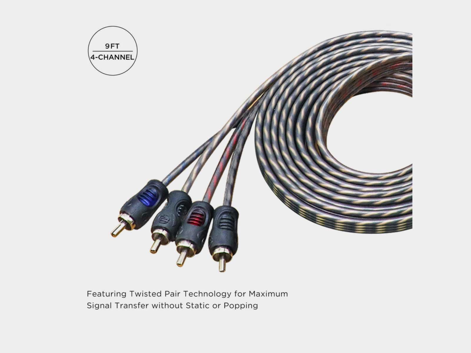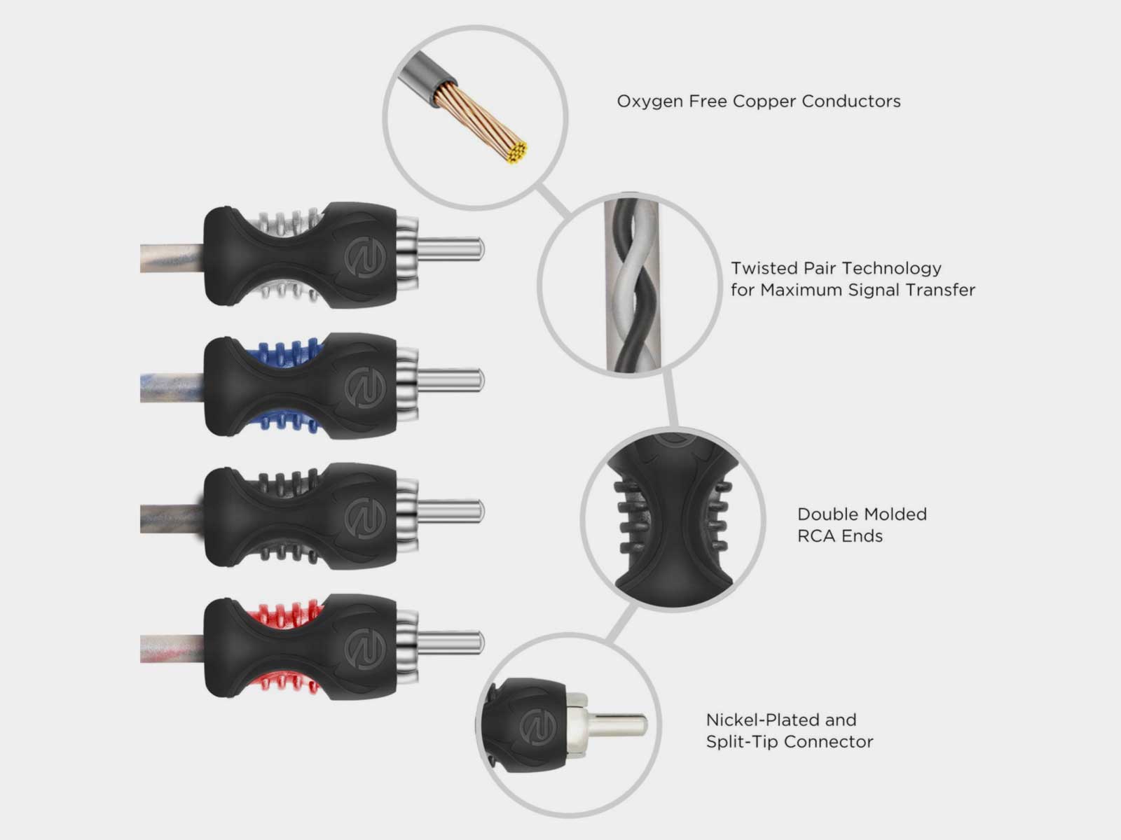 4-Kanal RCA-Interconnect-Kabel, 270 cm Länge, liefert kristallklaren Stereosound für High-End-Auto-Audio, Marine-, Motorrad- und Powersports-Audio.