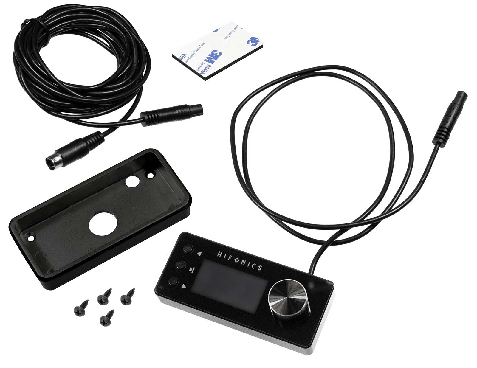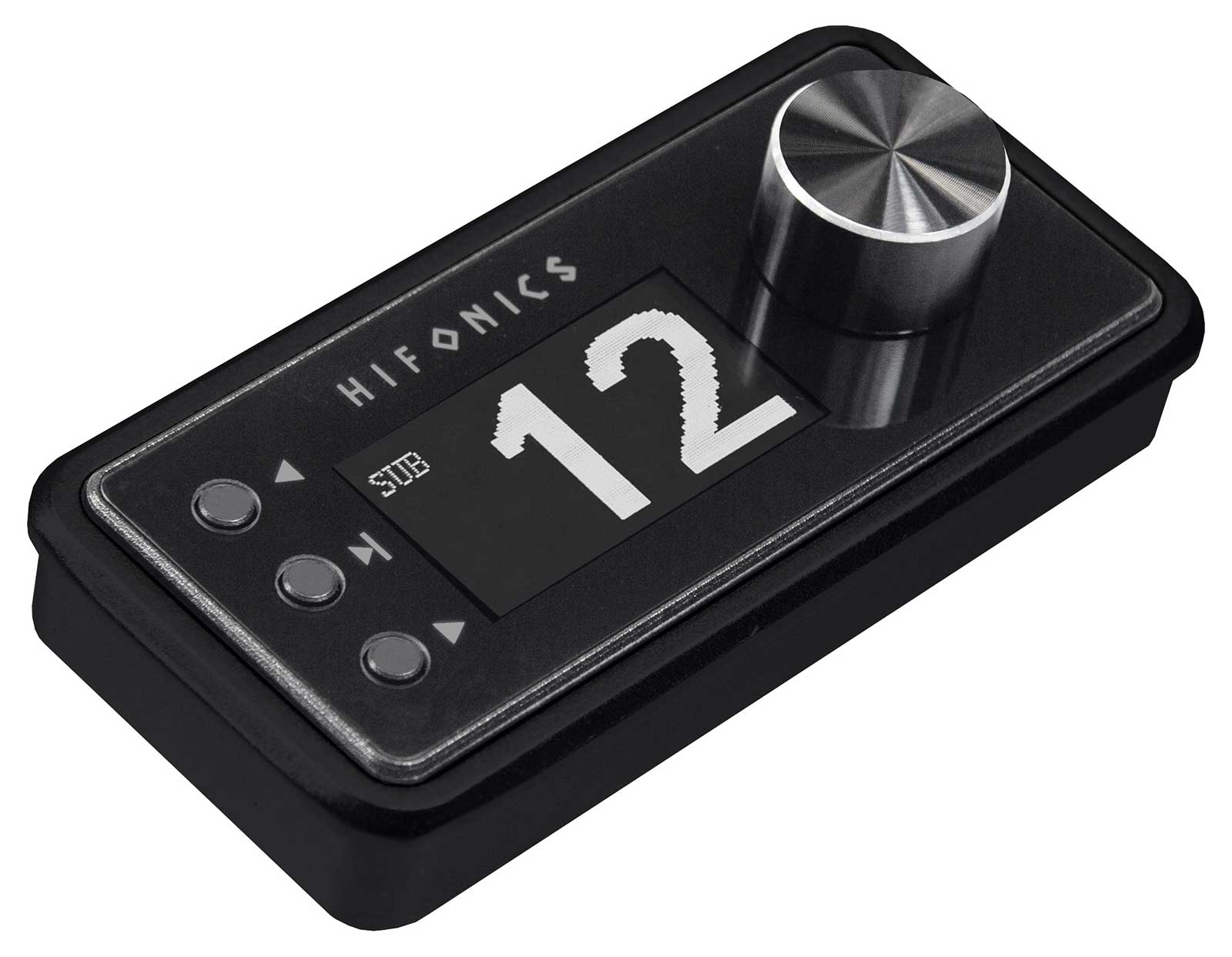 Mit der optionalen Fernbedienung HF-DMC lassen sich nicht nur bequem Subwoofer-Volumen und Master-Lautstärke regeln sowie Eingangsquellen und gespeicherte Settings anwählen, sondern es lässt sich auch der aktuell abgespielte Musiktitel steuern.