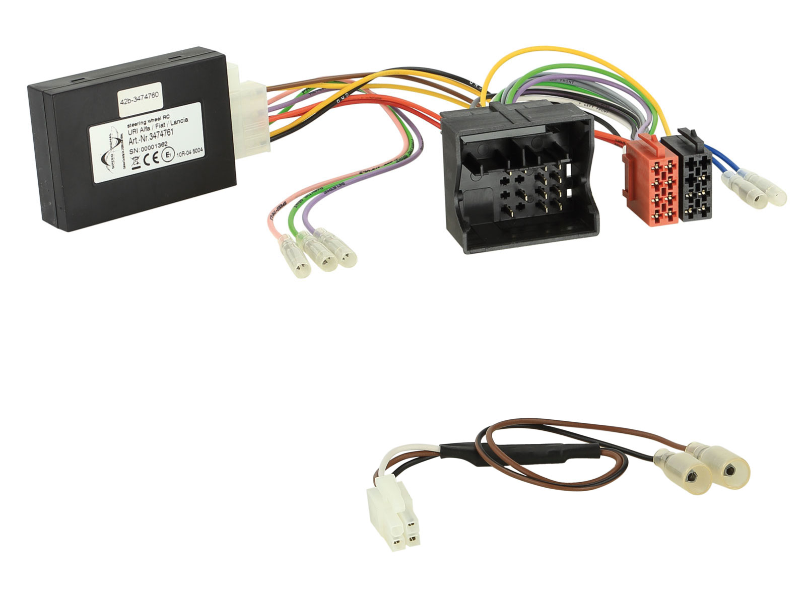 Lieferumfang: Lenkradfernbedienungsinterface, Anschlußkabel (KFZ auf ISO), Kabel zum Anschluß ans Nachrüst-Radio (Remote in), Einbauanleitung