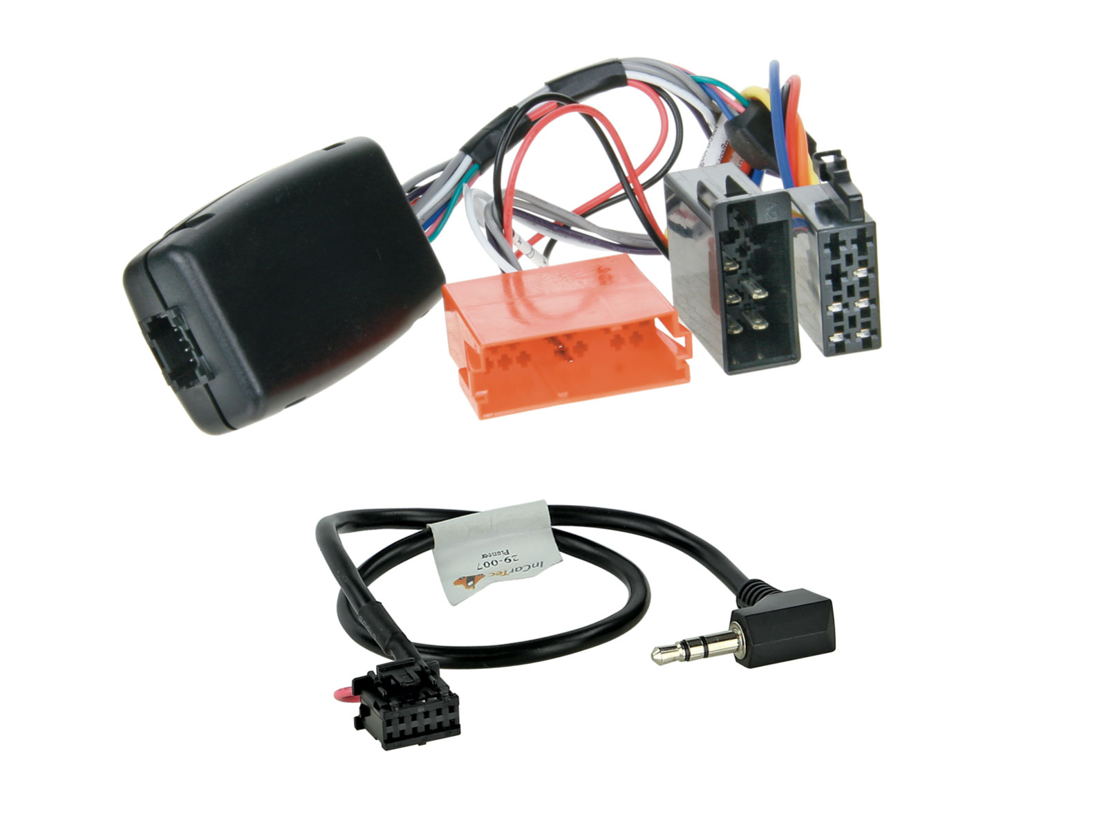Lieferumfang: Lenkradfernbedienungsinterface, Anschlusskabel (KFZ auf ISO), Kabel zum Anschluß ans Nachrüst-Radio (Remote in), Einbauanleitung