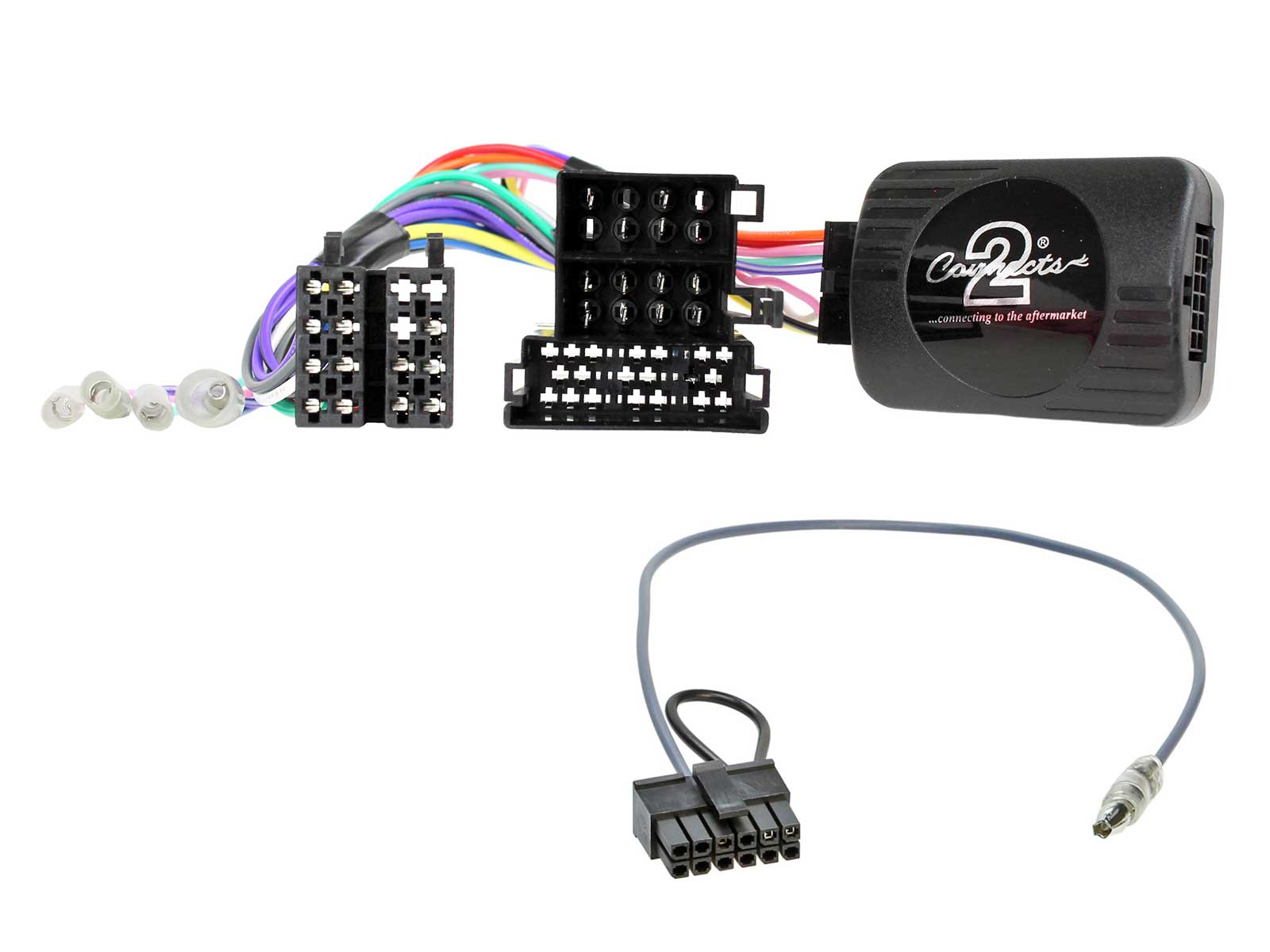 Lieferumfang: Lenkradfernbedienungsinterface, Anschlußkabel (KFZ auf ISO), Kabel zum Anschluß ans Nachrüst-Radio (Remote in), Einbauanleitung