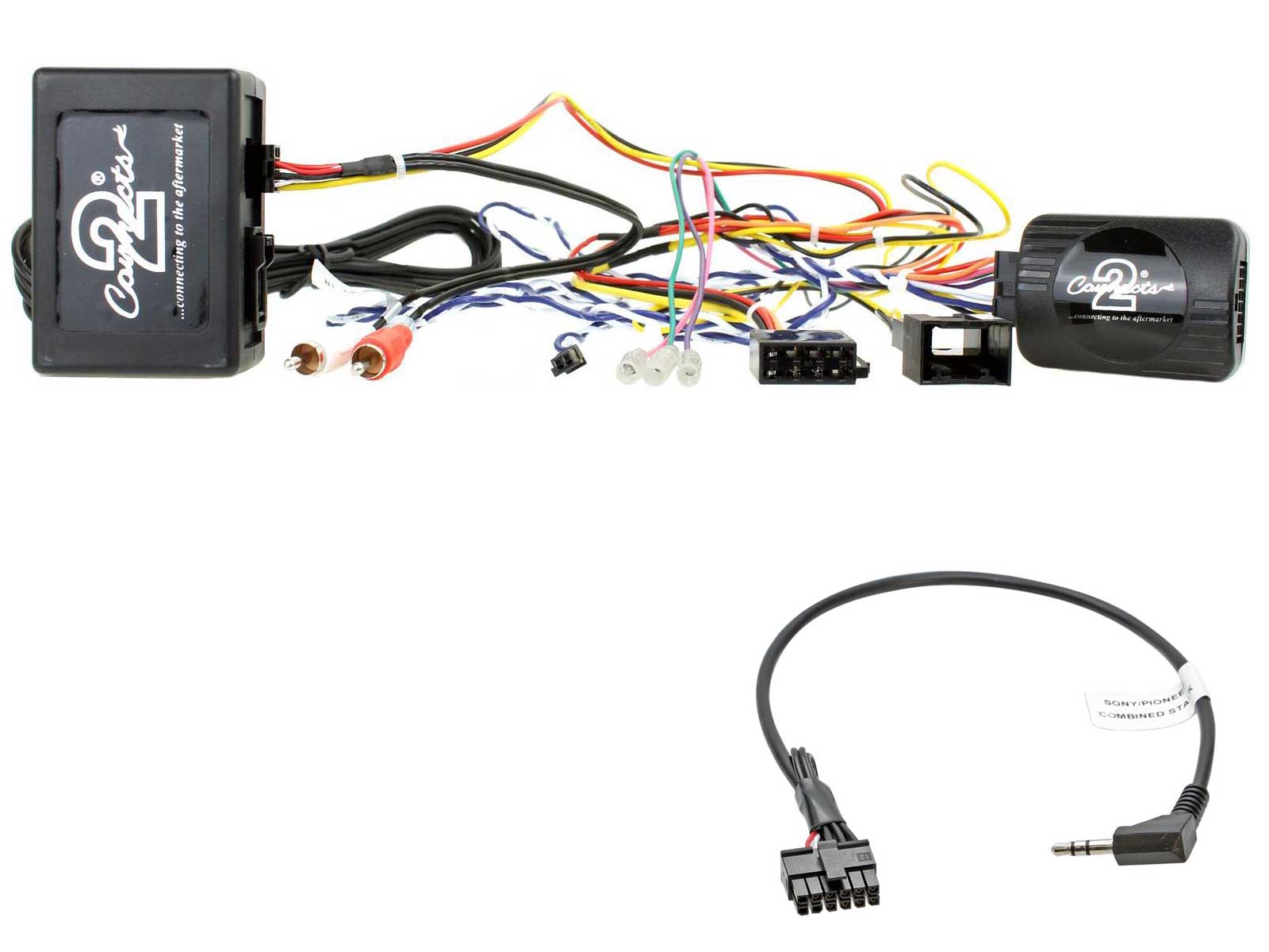 Lieferumfang: Lenkradfernbedienungsinterface, Anschlußkabel (KFZ auf ISO), Kabel zum Anschluß ans Nachrüst-Radio (Remote in), Einbauanleitung
