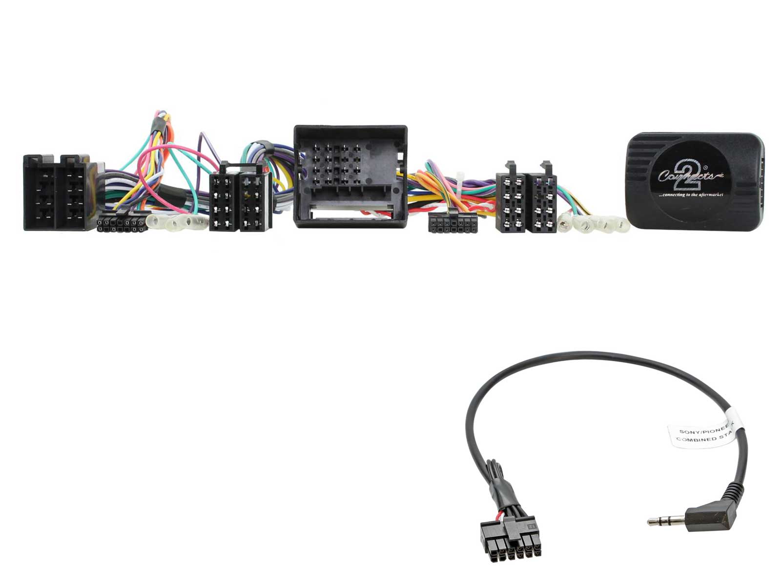 Lieferumfang: Lenkradfernbedienungsinterface, Anschlußkabel (KFZ auf ISO), Kabel zum Anschluß ans Nachrüst-Radio (Remote in), Einbauanleitung