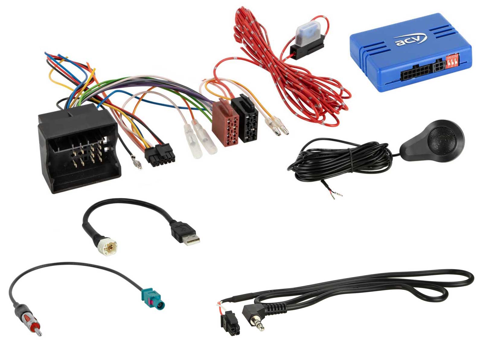 Folgende Signale werden zur Verfügung gestellt: Lenkradfernbedienung; Reimportfahrzeuge oder Fahrzeuge mit abweichender Software können in Funktionen inkompatibel sein; rosa: +12V Zündung Klemme 15 1,5A max., orange: +12V Beleuchtung Klemme 58 0,1A max., weiß: +12V Rückfahrsignal 1,5A max., gelb/grün gelb/rot: Geschwindigkeitssignal
