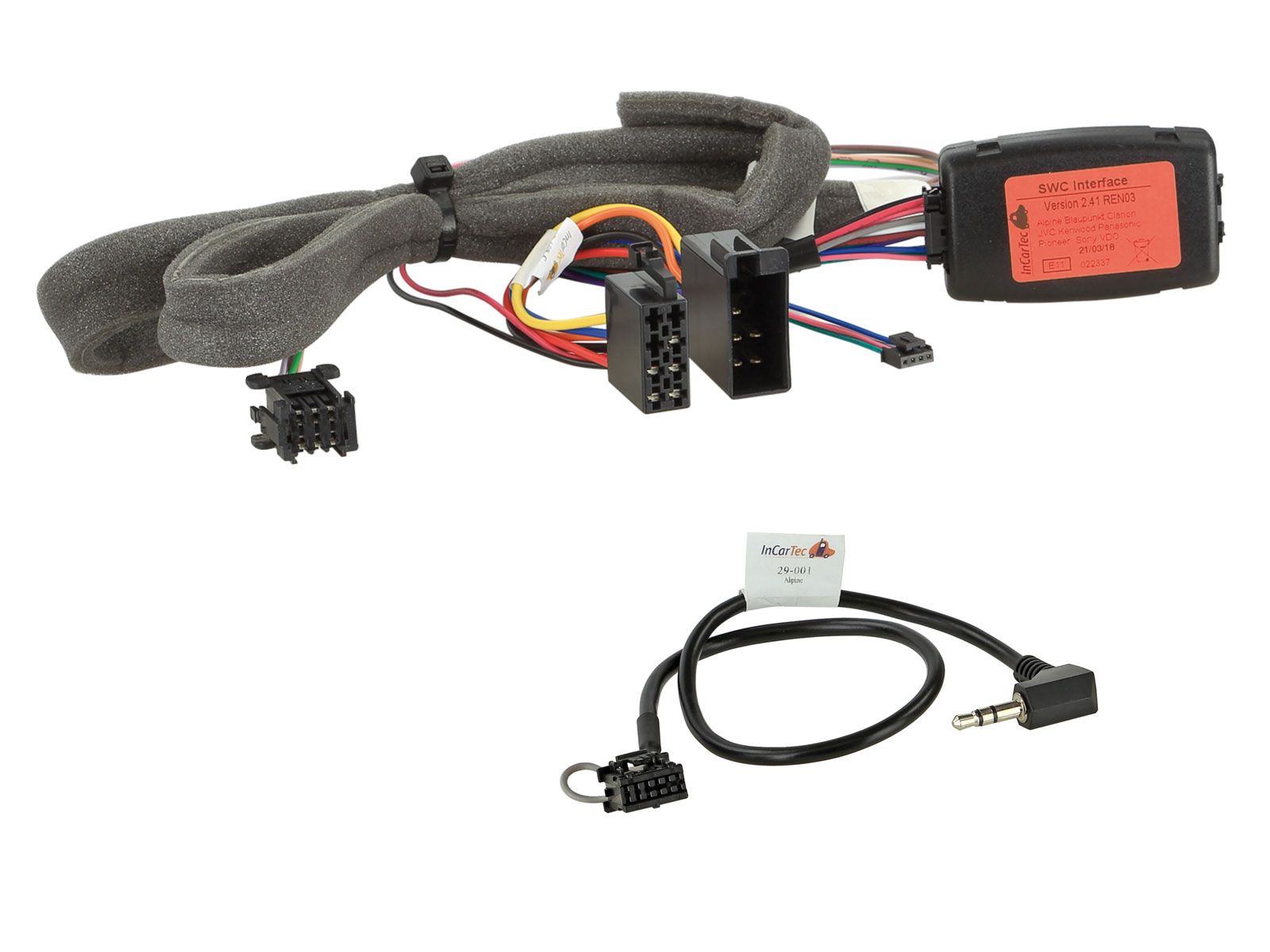 Lieferumfang: Lenkradfernbedienungsinterface, Anschlusskabel (KFZ auf ISO), Kabel zum Anschluß ans Nachrüst-Radio (Remote in), Einbauanleitung