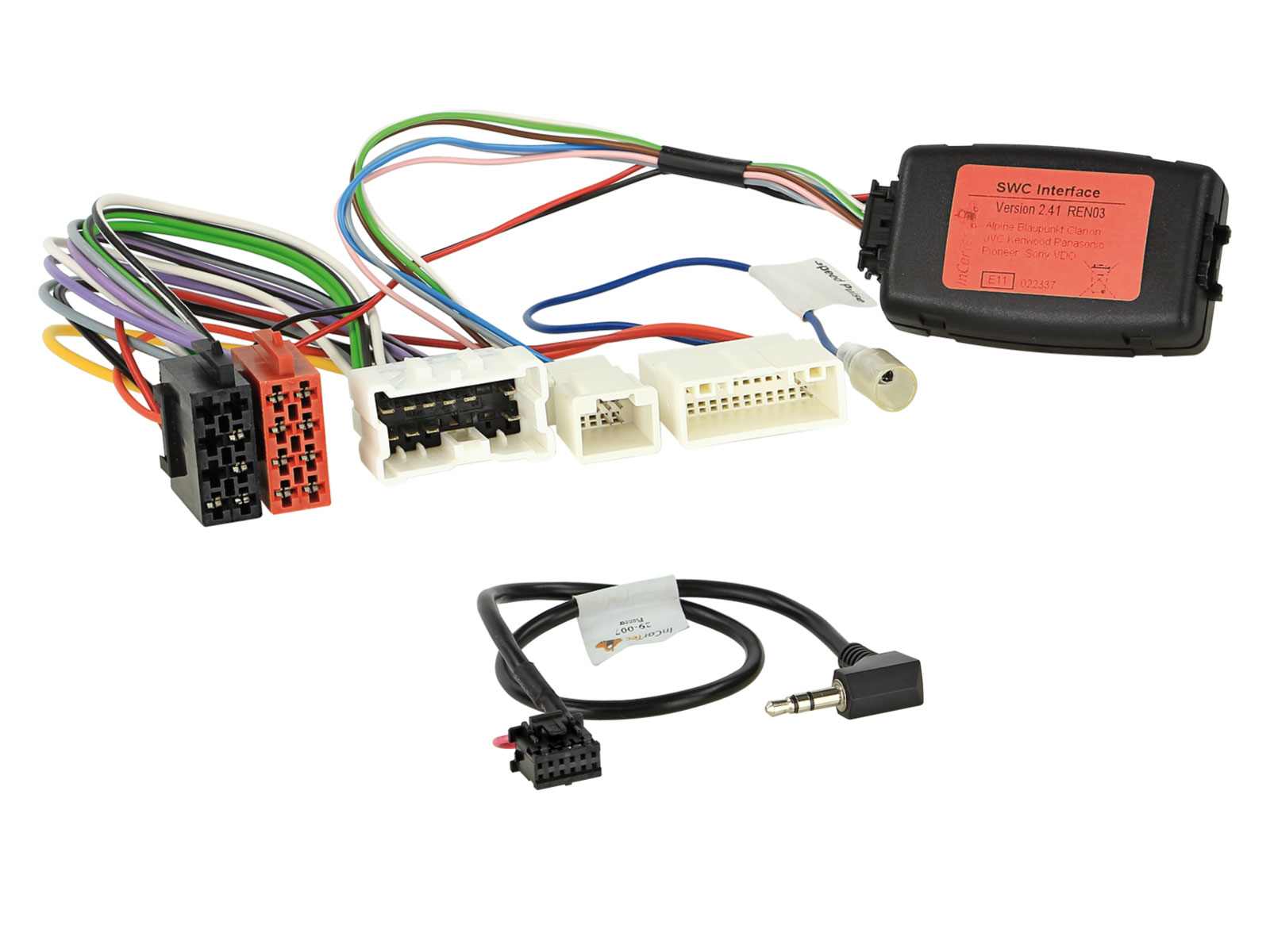 Lieferumfang: Lenkradfernbedienungsinterface, Anschlusskabel (KFZ auf ISO), Kabel zum Anschluß ans Nachrüst-Radio (Remote in), Einbauanleitung