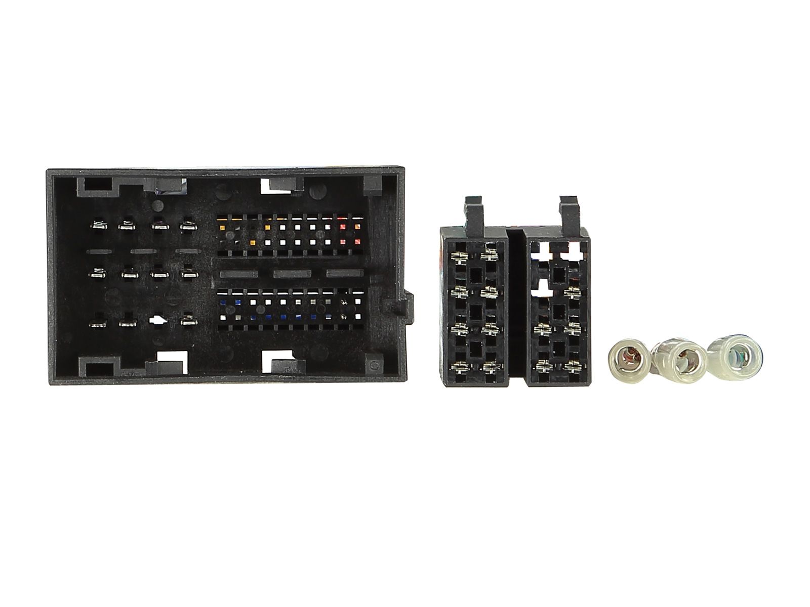 Lieferumfang: Lenkradfernbedienungsinterface, Anschlußkabel (KFZ auf ISO), Kabel zum Anschluß ans Nachrüst-Radio (Remote in), Einbauanleitung