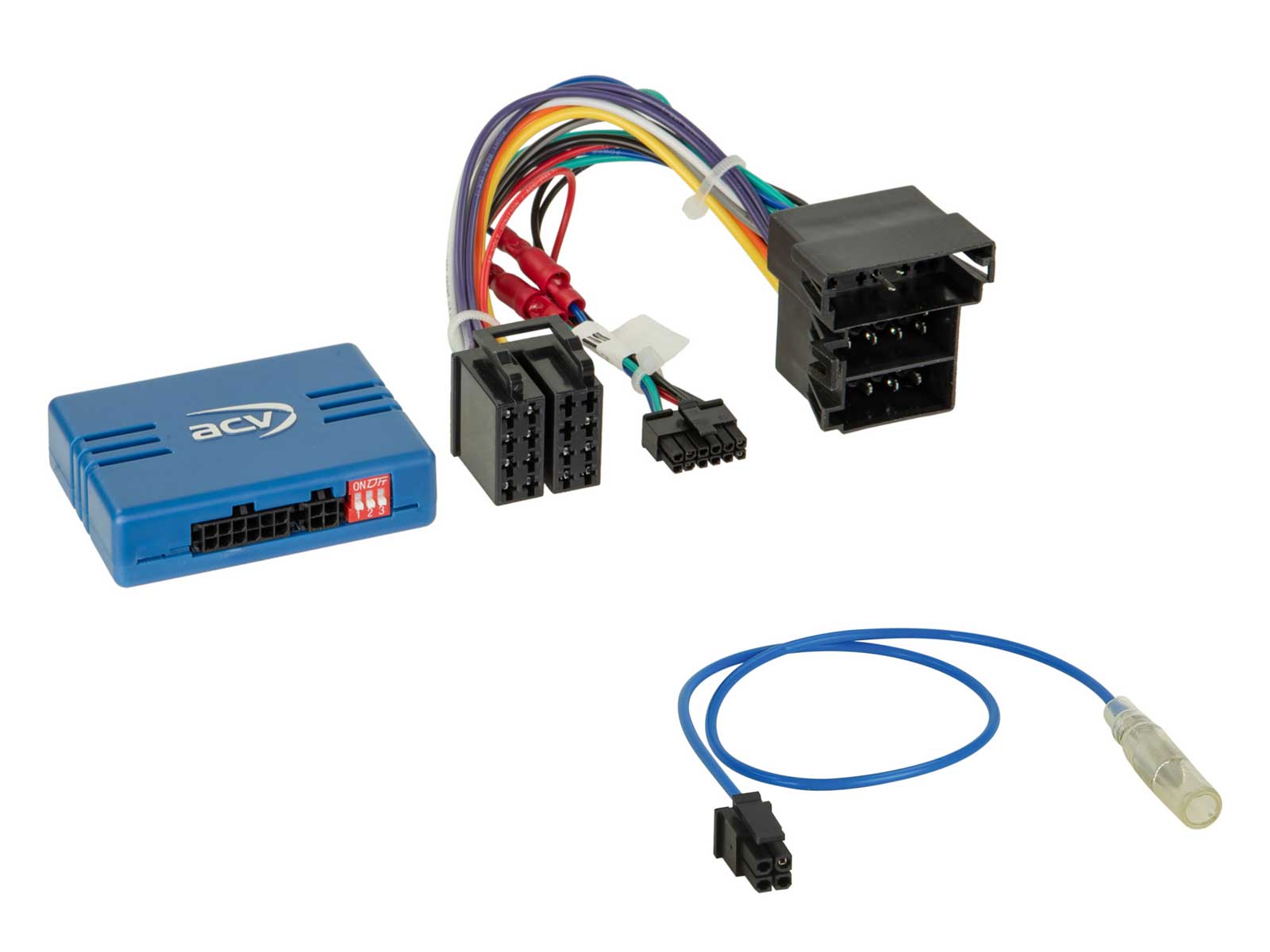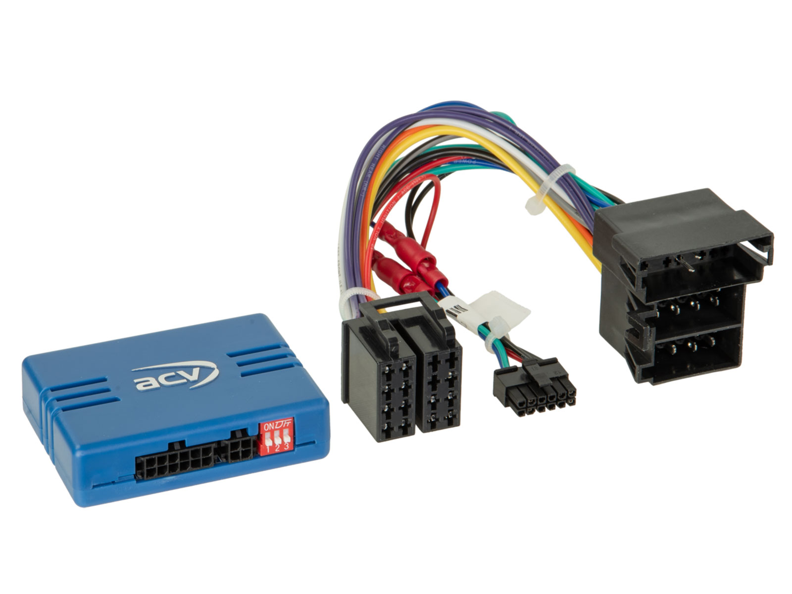 Lieferumfang: Lenkradfernbedienungsinterface, Anschlußkabel (KFZ auf ISO), Kabel zum Anschluß ans Nachrüst-Radio (Remote in), Einbauanleitung
