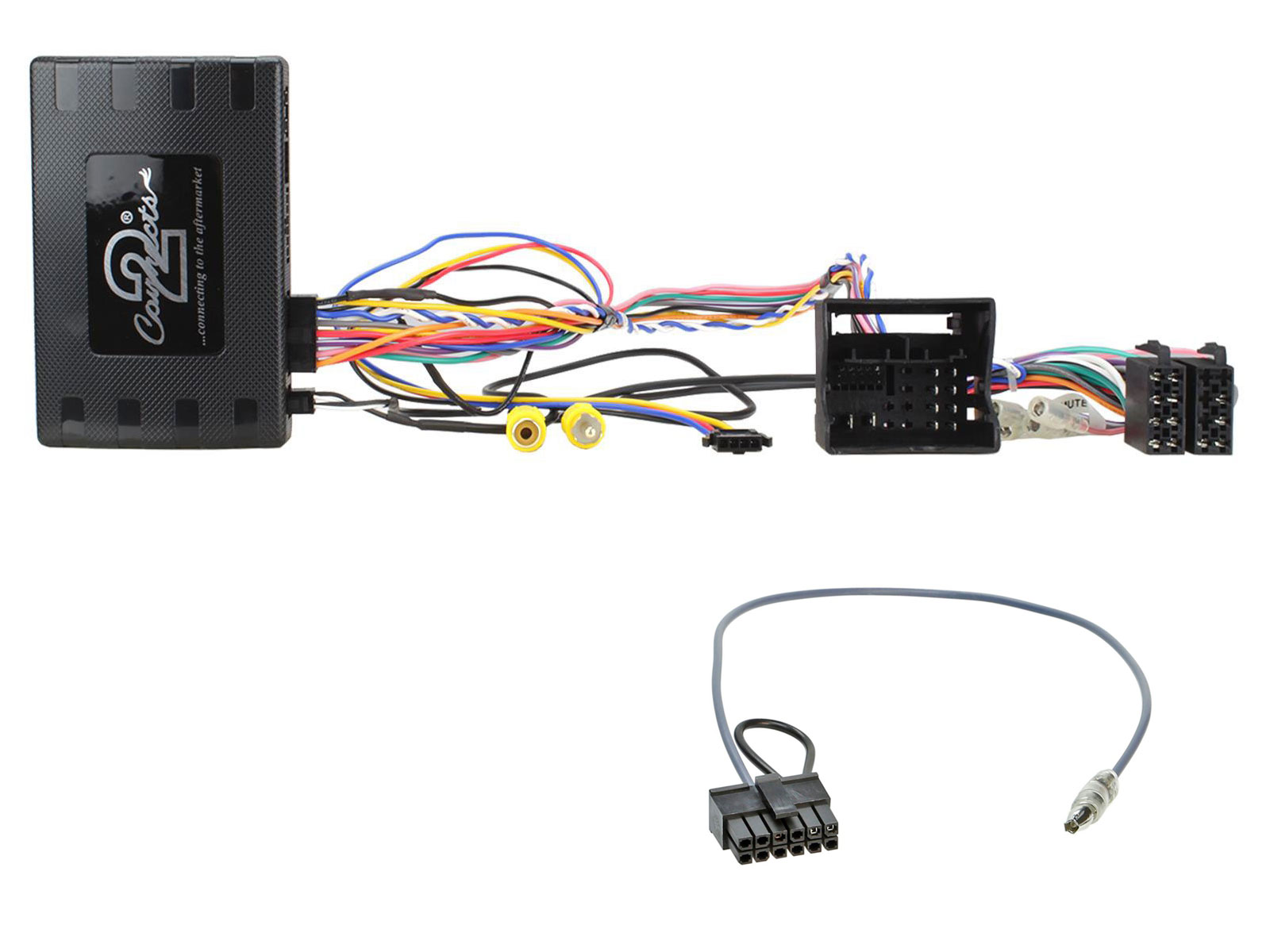 Schnittstelle zur Beibehaltung von Fahrzeugmenüs, Lenkradsteuerungen, Telefontasten usw. beim Einbau eines Nachrüstradios. Bietet einen optionalen Eingang für eine Rückfahrkamera und Ausgänge für Parkbremse, Geschwindigkeitsimpuls, Rückwärtsgang und Stummschaltung