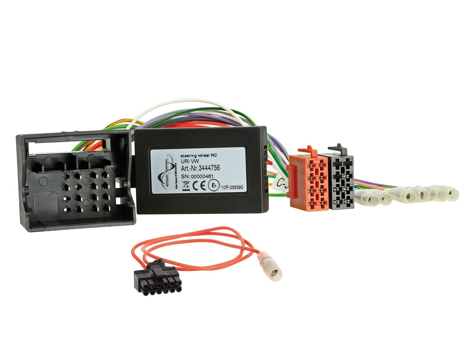 Lieferumfang: Lenkradfernbedienungsinterface, Anschlußkabel (KFZ auf ISO), Kabel zum Anschluß ans Nachrüst-Radio (Remote in), Einbauanleitung