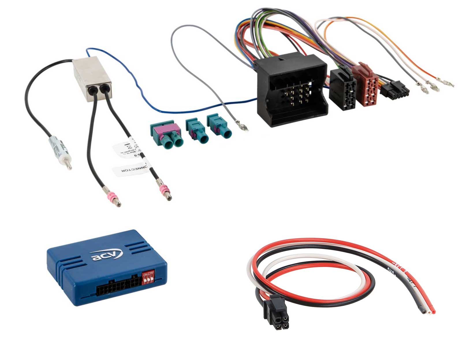 Folgende Signale werden zur Verfügung gestellt: Lenkradfernbedienung, CAN Bus Aktivierung OEM Soundsystem unterstützt; Reimportfahrzeuge oder Fahrzeuge mit abweichender Software können in Funktionen inkompatibel sein; rosa: +12V Zündung Klemme 15 1,5A max., orange: +12V Beleuchtung Klemme 58 0,1A max., weiß: +12V Rückfahrsignal 1,5A max., gelb/grün gelb/rot: Geschwindigkeitssignal, grau: Interface keine Funktion, grau: 40 Pin Quadlock Pin 11 +12 Amp Remote DynAudio OEM Soundsystem