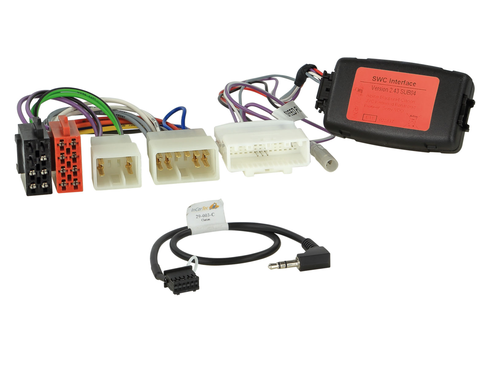 Lieferumfang: Lenkradfernbedienungsinterface, Anschlußkabel (KFZ auf ISO), Kabel zum Anschluß ans Nachrüst-Radio (Remote in), Einbauanleitung