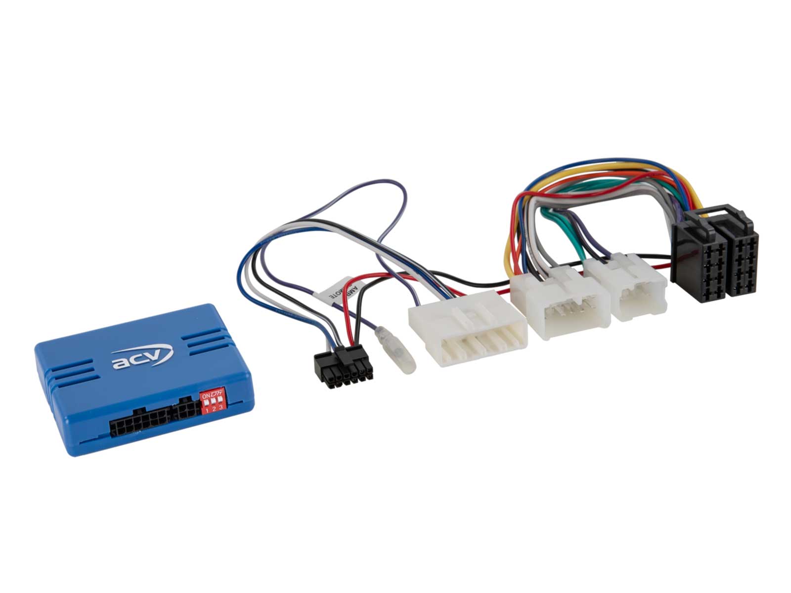 Lieferumfang: Lenkradfernbedienungsinterface, Anschlußkabel (KFZ auf ISO), Kabel zum Anschluß ans Nachrüst-Radio (Remote in), Einbauanleitung