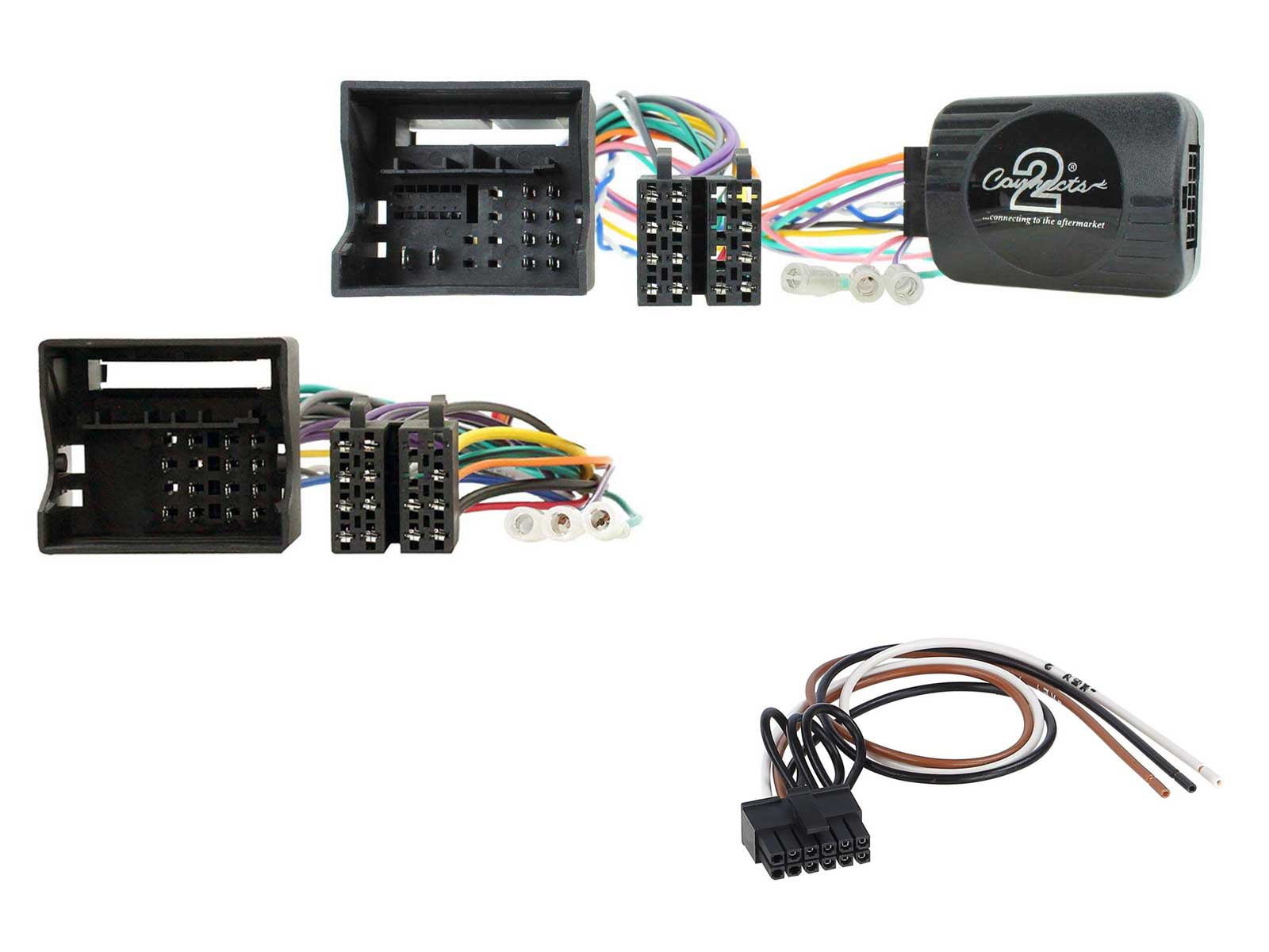 Lieferumfang: Lenkradfernbedienungsinterface, Anschlußkabel (KFZ auf ISO), Kabel zum Anschluß ans Nachrüst-Radio (Remote in), Einbauanleitung