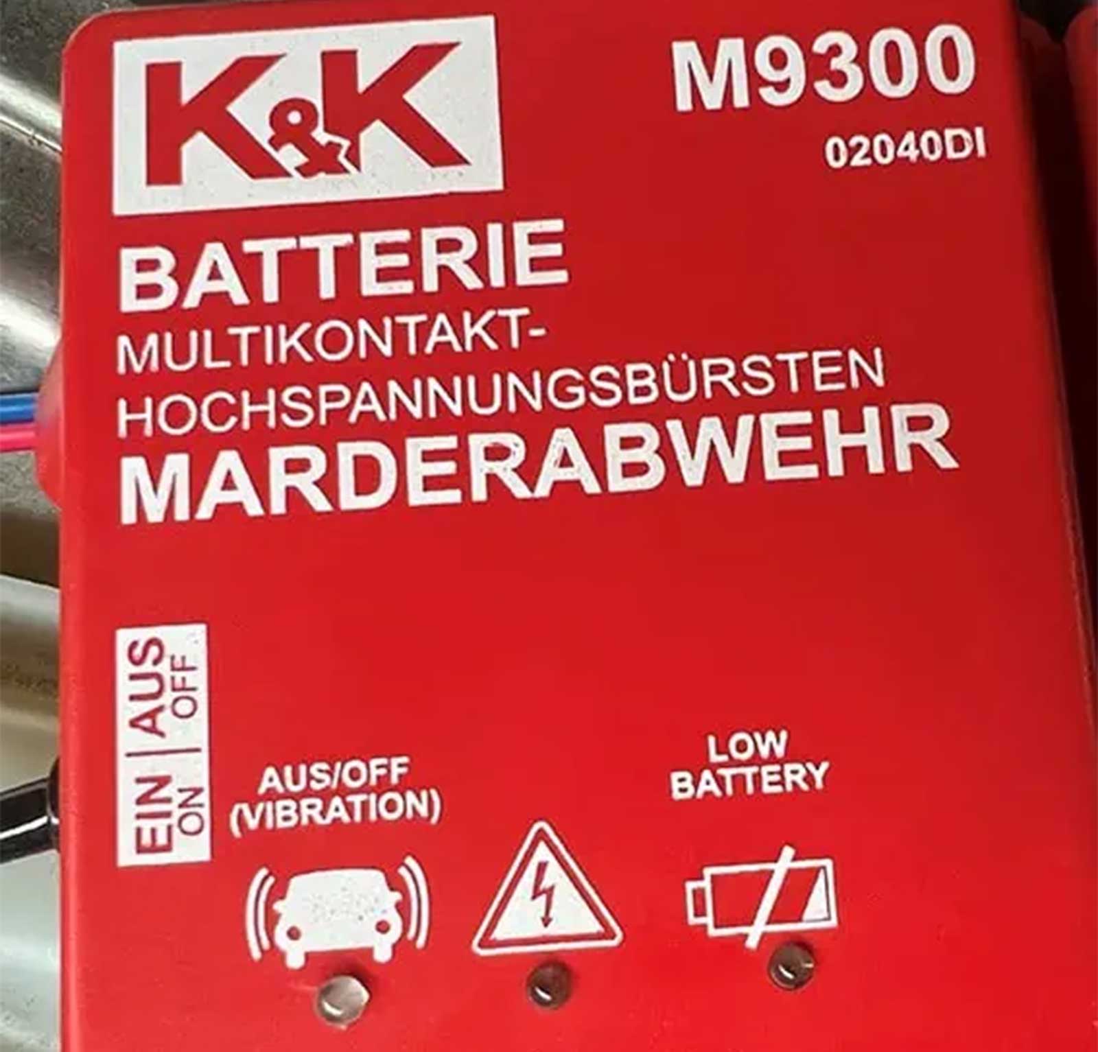 Marder sind lästig und beißen sich gerne durch die Kabel im Motorraum Ihres Autos. Mit den K&K Marder-Abwehrsystemen können Sie dieses effektiv verhindern. "Das Fokussierte" ist ein batteriebetriebenes Modell speziell für Fahrzeuge mit langen Standzeiten. Im Motorraum werden Multikontakt-Hochspannungsbürsten verbaut, diese verjagen den Marder durch Stromschläge, die bei Kontakt ausgelöst werden. Die Bürsten gehen durch das Fell direkt auf die Haut, sodass das nicht nur die empfindlichen Pfoten und die Schnauze Angriffsfläche bietet.