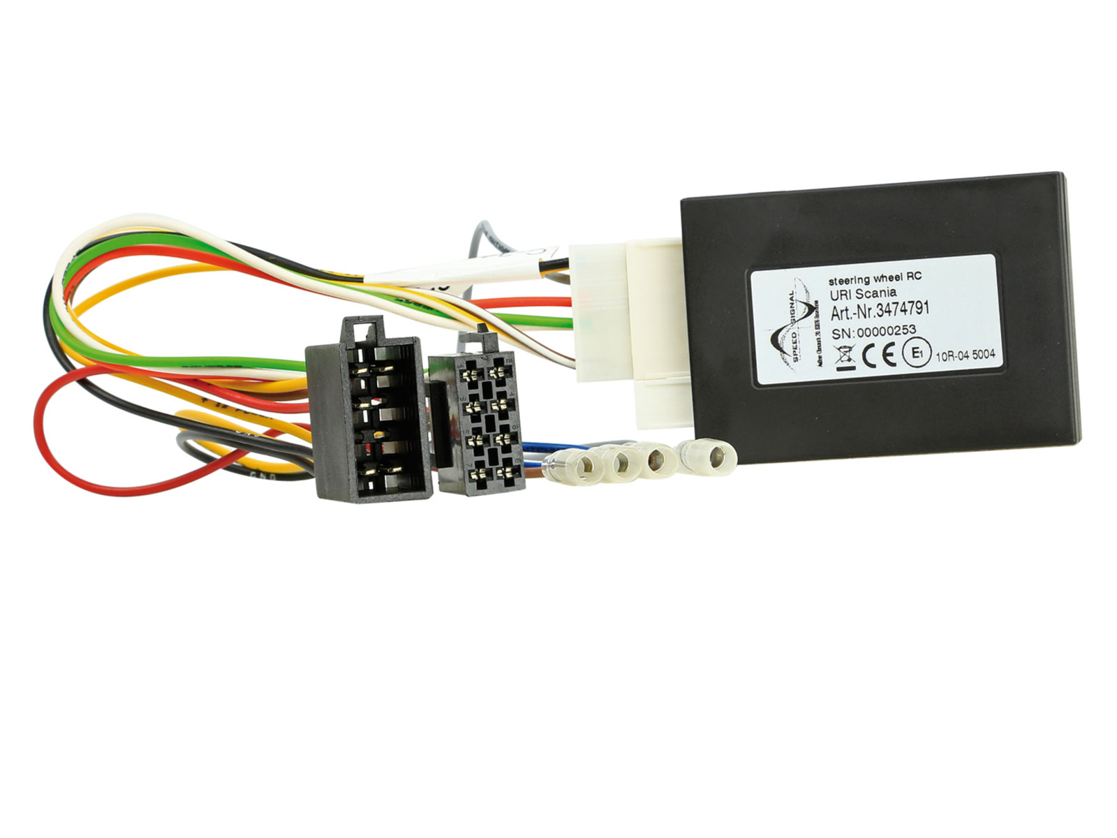 Lieferumfang: Lenkradfernbedienungsinterface, Anschlußkabel (KFZ auf ISO), Kabel zum Anschluß ans Nachrüst-Radio (Remote in), Einbauanleitung