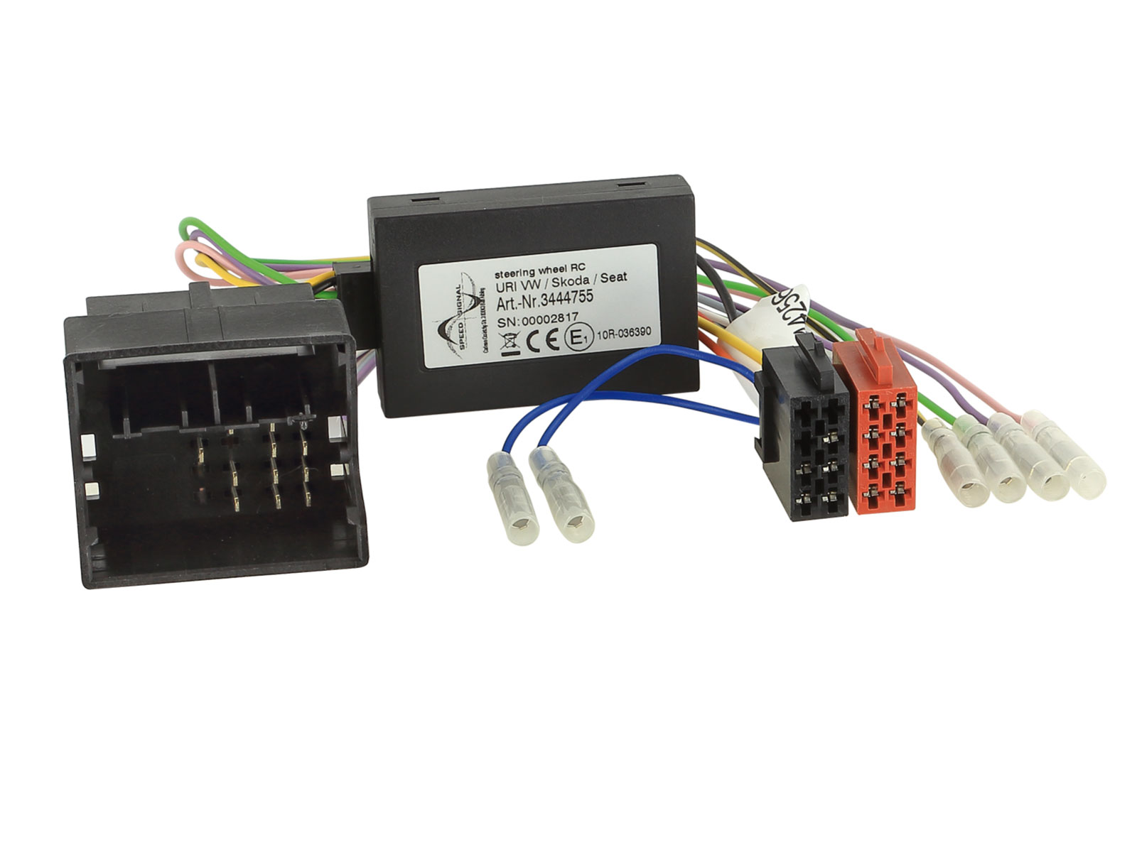Lieferumfang: Lenkradfernbedienungsinterface, Anschlußkabel (KFZ auf ISO), Kabel zum Anschluß ans Nachrüst-Radio (Remote in), Einbauanleitung