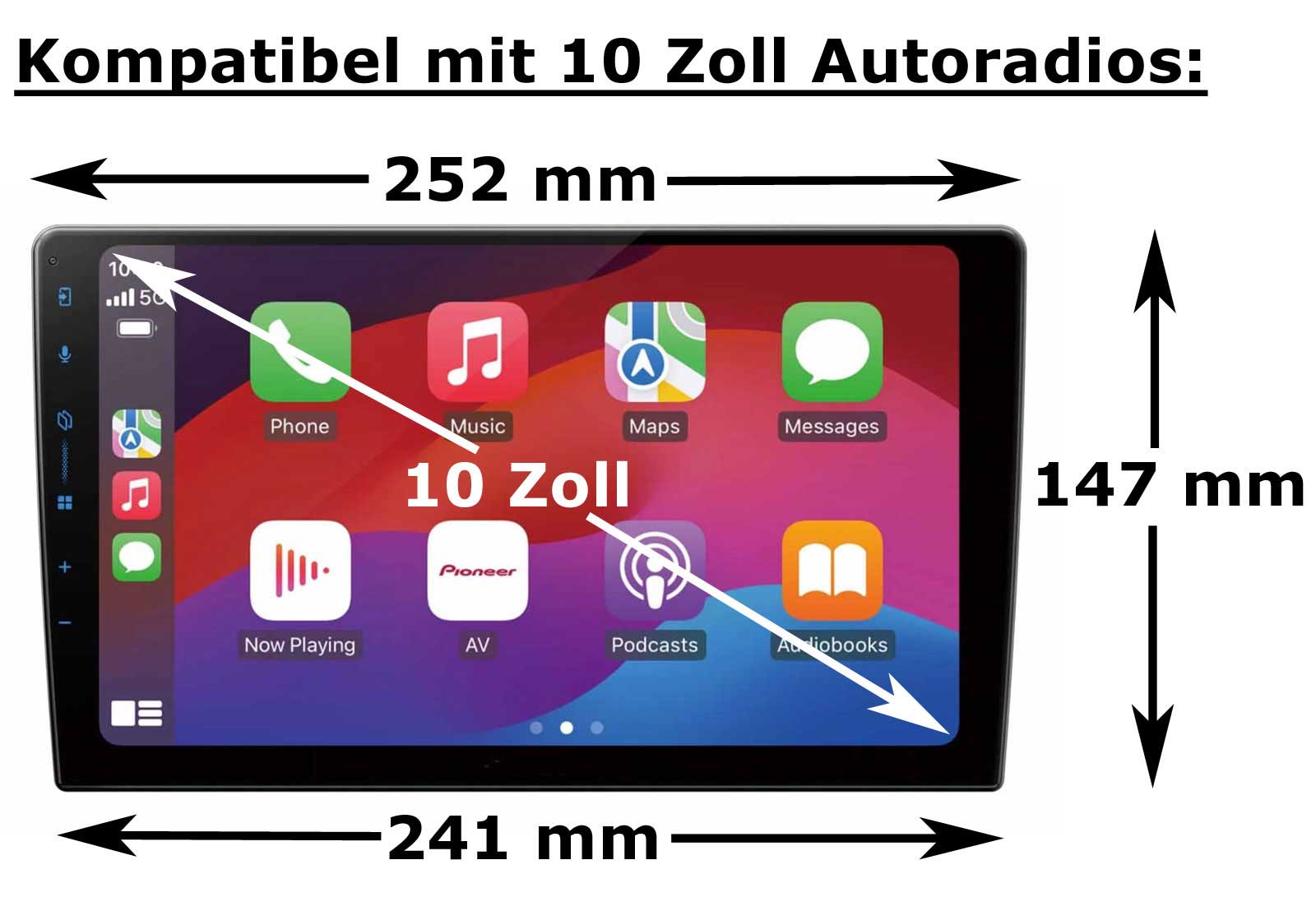 für 10 Zoll Trapez Autoradios (Breite oben: 252 mm, Breite unten: 241 mm, Höhe: 147 mm)