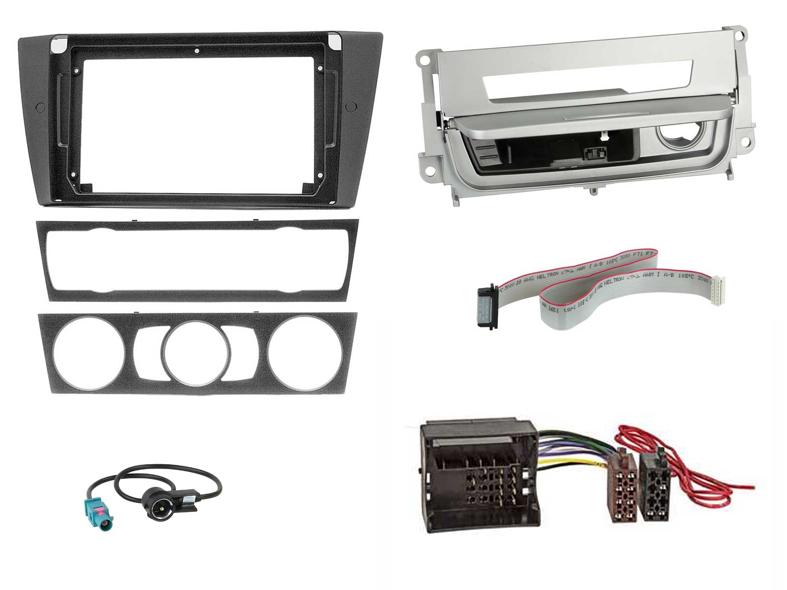 Radioeinbauset für 9 Zoll Autoradio in BMW 3er E90 (2005-2013), Raucherpaket silber