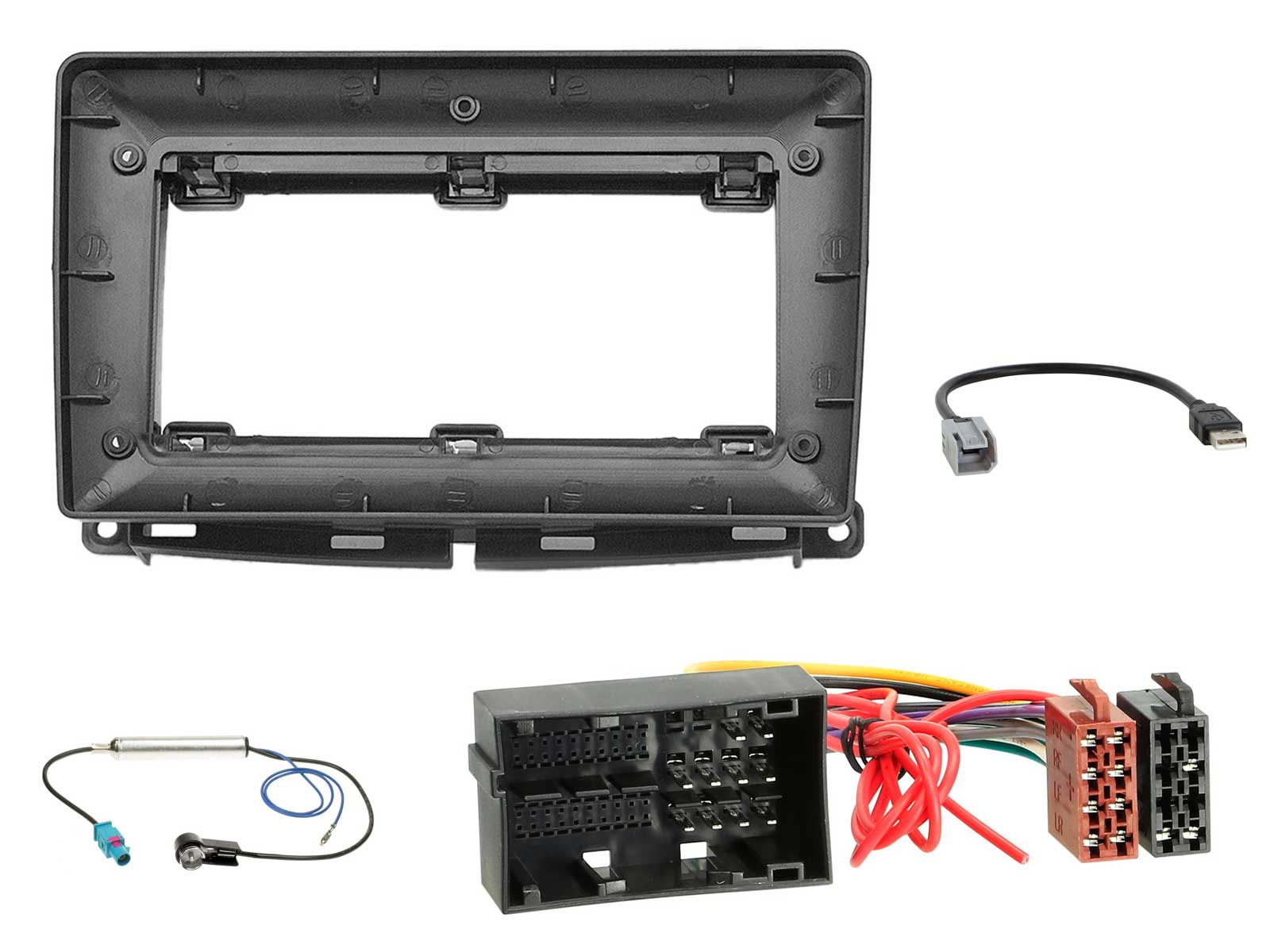 Einbauset mit Lenkradadapter für 9 Zoll Autoradio in Fiat 500 (ZAF312, ab 2016), USB
