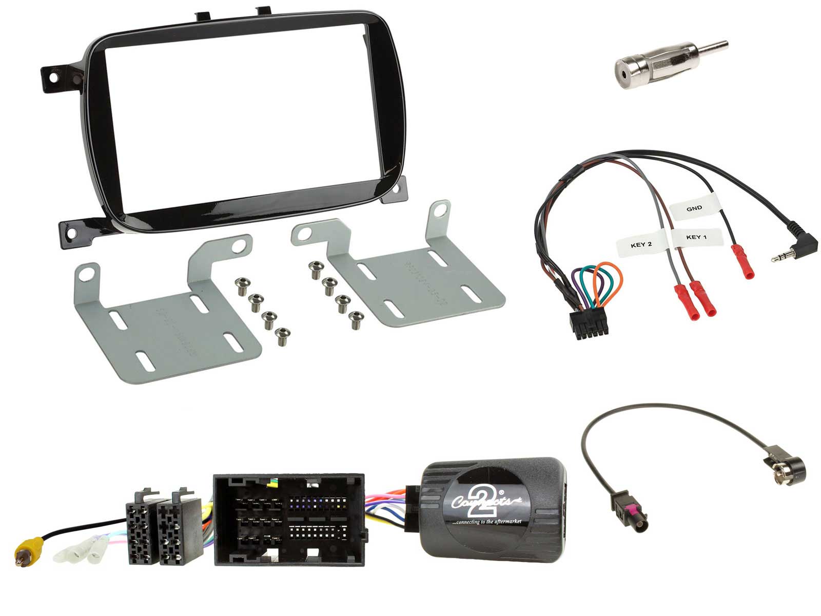Einbauset mit Lenkradadapter für Doppel DIN Autoradio in 500 X (ab 2016 Facelift) - Piano