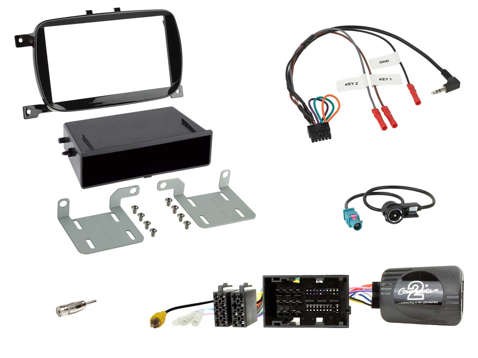 Radioeinbauset mit CAN-Bus für DIN Autoradio in Fiat 500 X (ab 2016 Facelift) - Piano, ohne Blue&Me