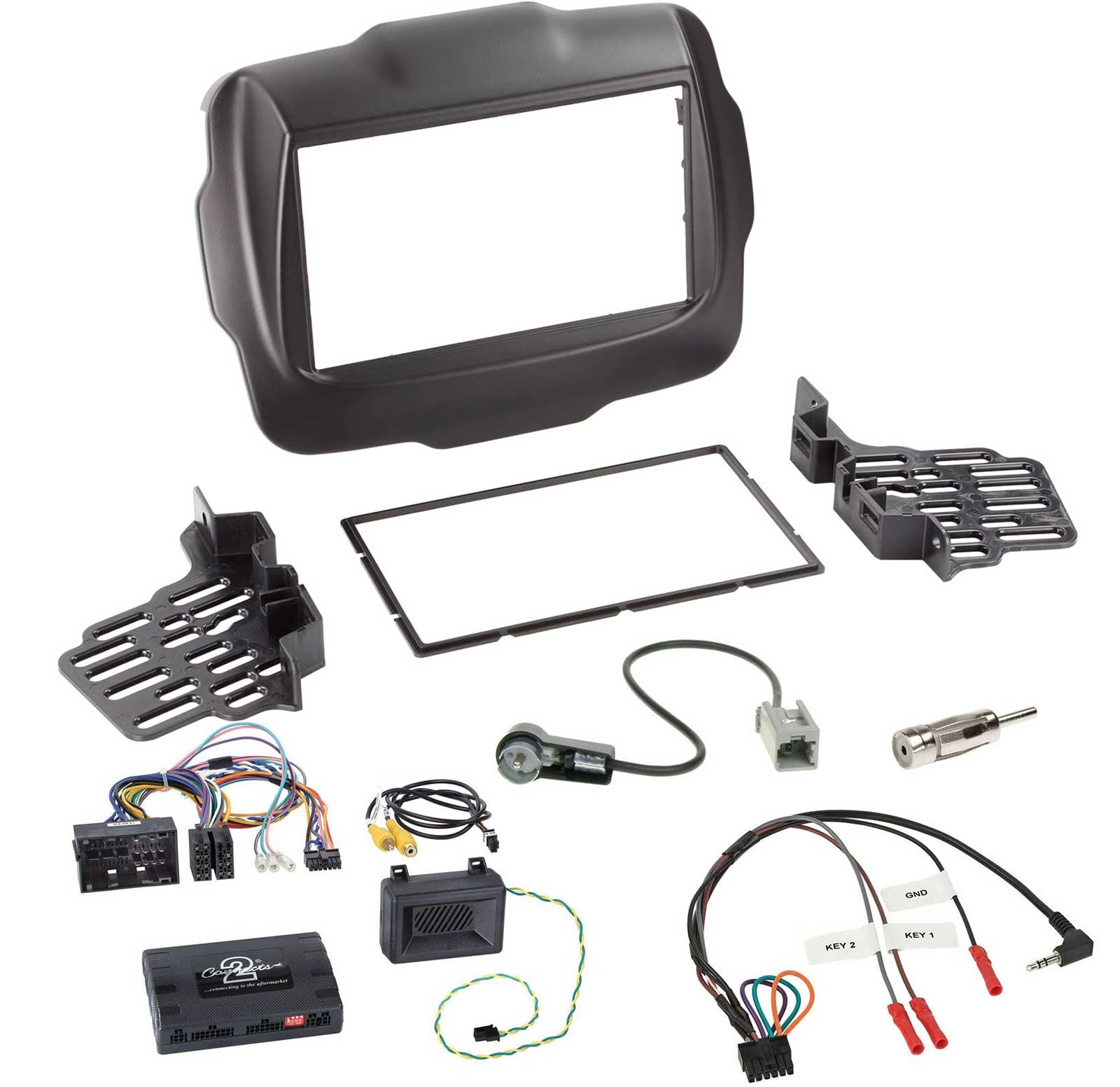 - Um die Menüeinstellungen zu visualisieren, Rückfahrkameraeingang (Cynch) anschließen und konfigurieren