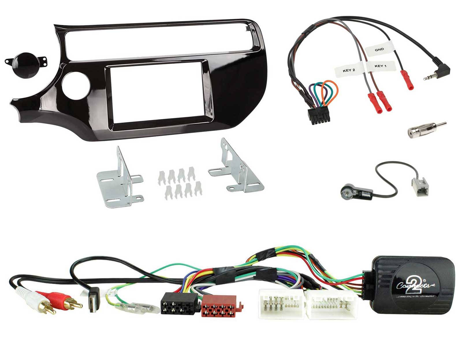 Einbauset mit Lenkradadapter für Doppel DIN Autoradio in Kia Rio (UB, ab 2015) - piano schwarz