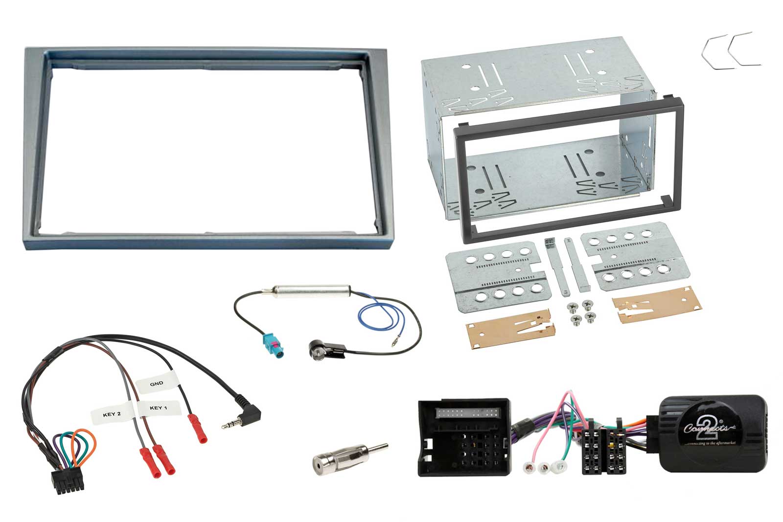 Einbauset mit Lenkradadapter für Doppel DIN Autoradio in Opel Corsa, Astra, Vectra (04-) - matt-chr