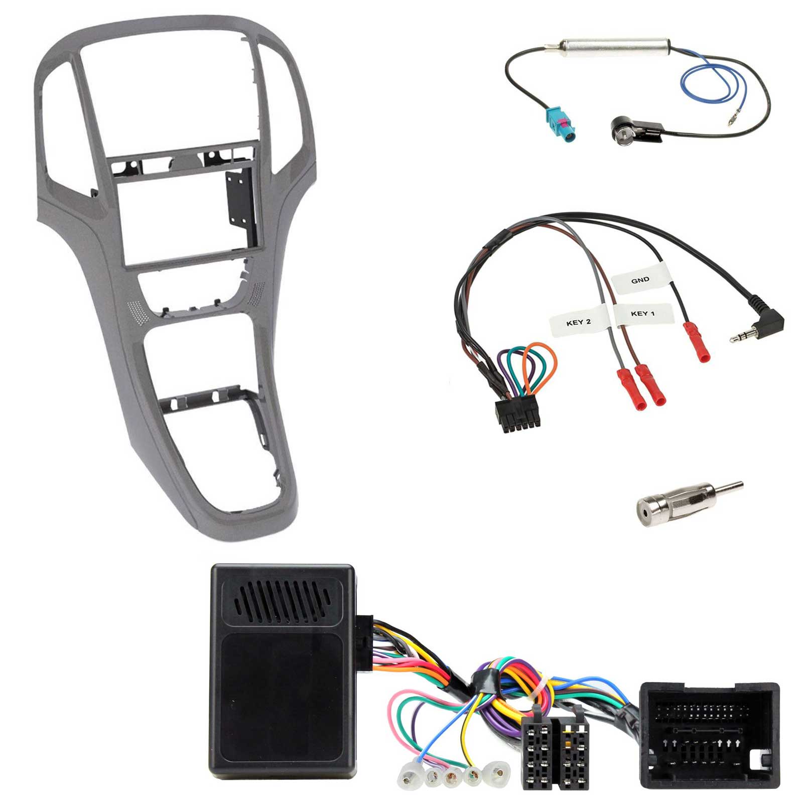 Einbauset mit Lenkradadapter für Doppel DIN Autoradio in Opel Astra J (ab 2009) - Titangrau