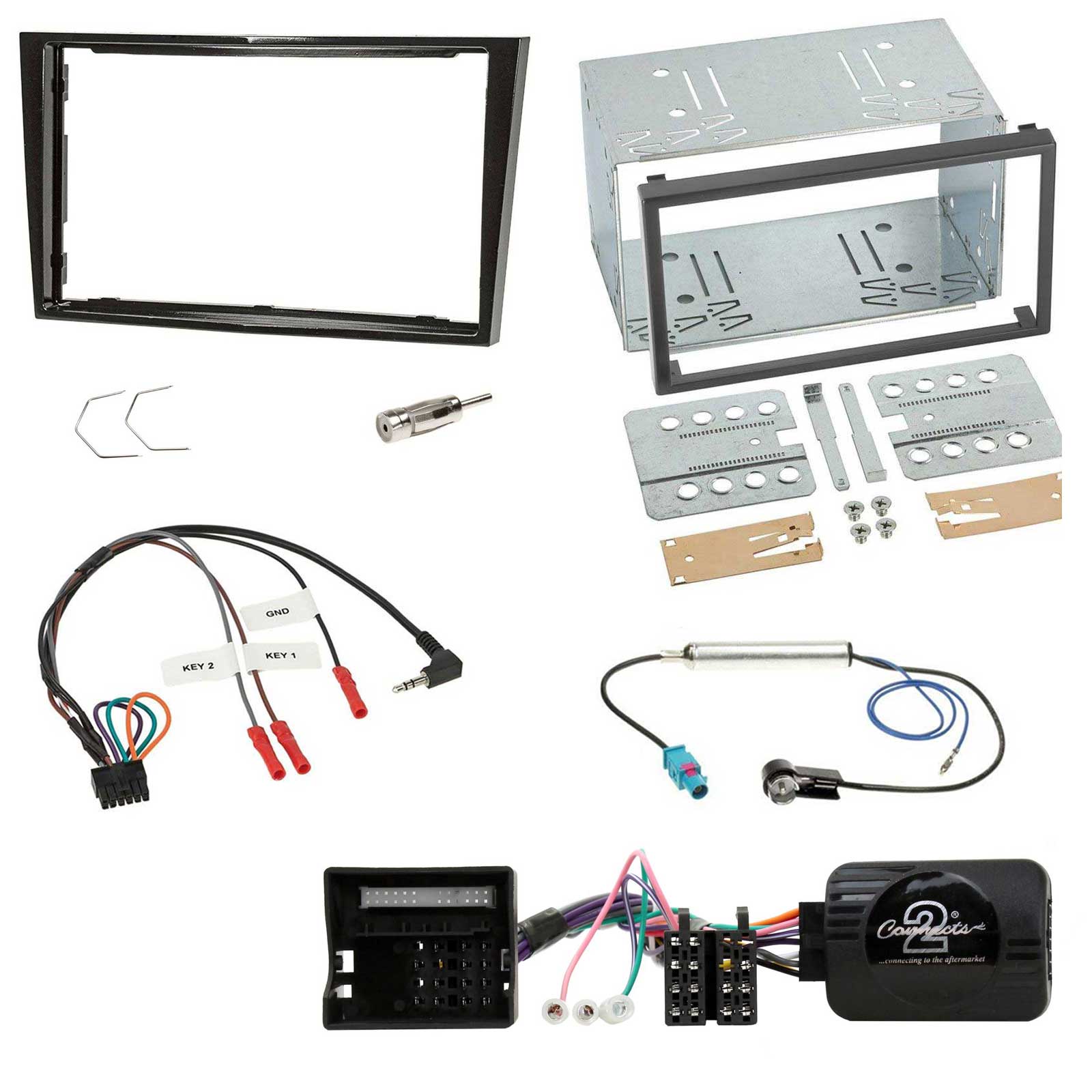 Einbauset mit Lenkradadapter für Doppel DIN Autoradio in Opel Zafira, Corsa D, Astra H - Klavierlack