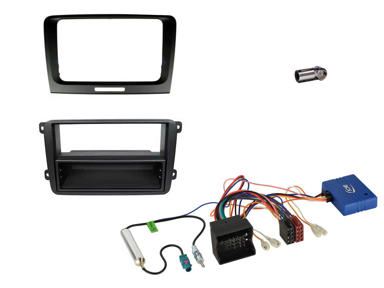 DIN Radioblende (schwarz) bestehend aus Einbaurahmen für VW Autoradio in Skoda Superb, Einbaurahmen für DIN Autoradio in VW Golf IV/V, Scirocco, Polo (mit Ablagefach)